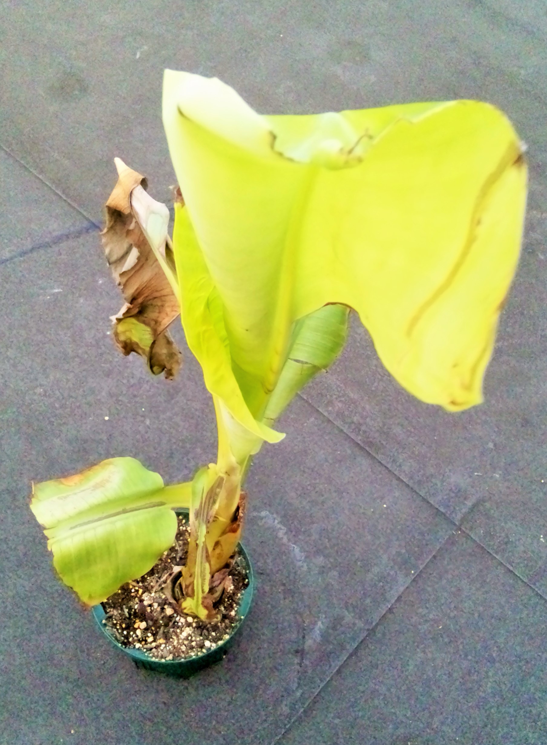 We hope she likes this environment enough to give a fruit. Attached instruction is read that banana leaves fall after another to grow up. However, it is a bit shocking to find out fallen one on the floor just over a night. We would try to be used to her custom.