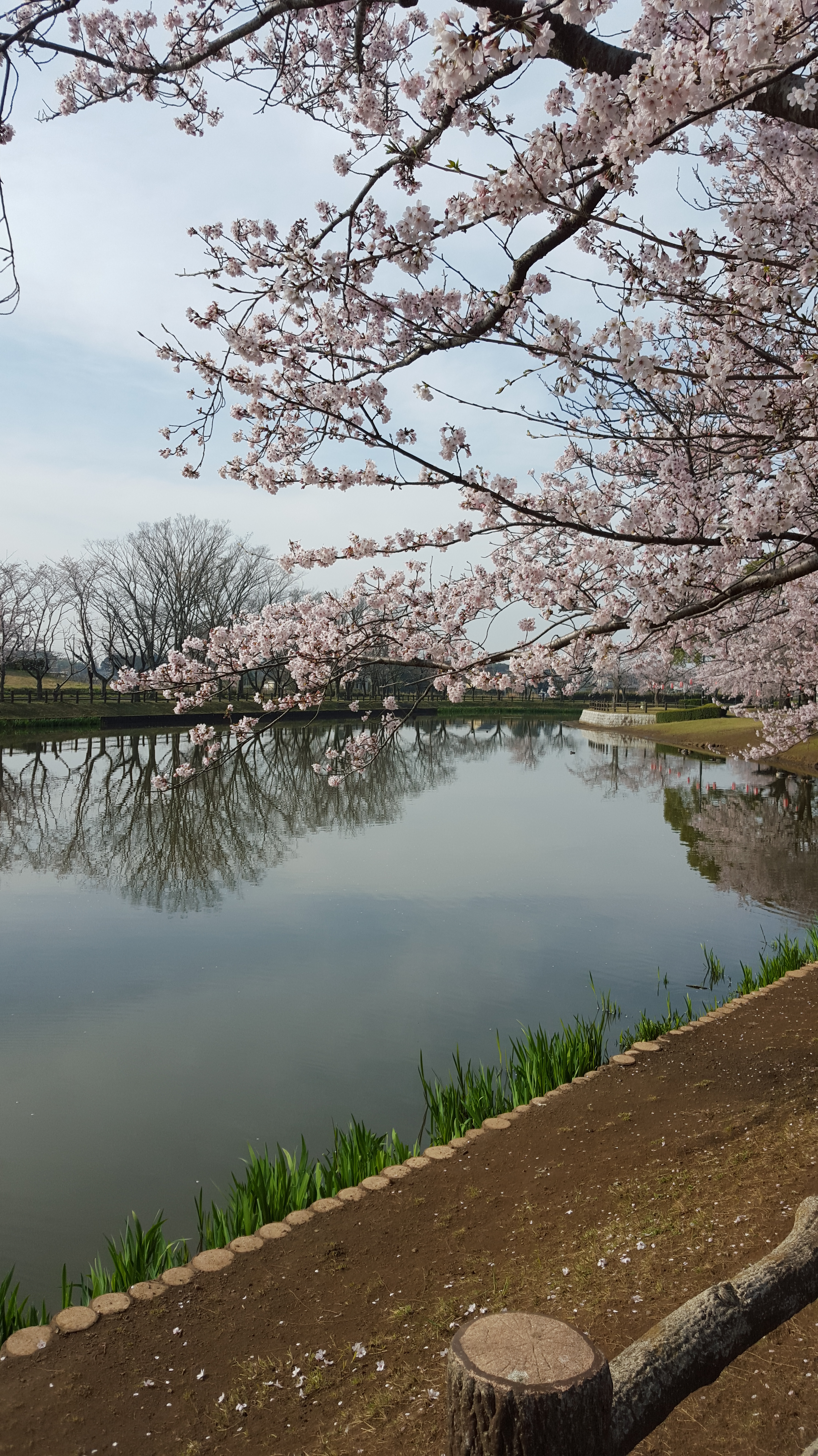 It is called 乙戸沼=Otonuma Park, accommodating a quite large pond. Running/walking courses surround the pond hemmed by many cherry trees. You can see various waterfowls while pigeons play in a canal with this tiny cascade. Sporadic fountain-like spray is not to catch your eyes but to uptake oxygen into water.