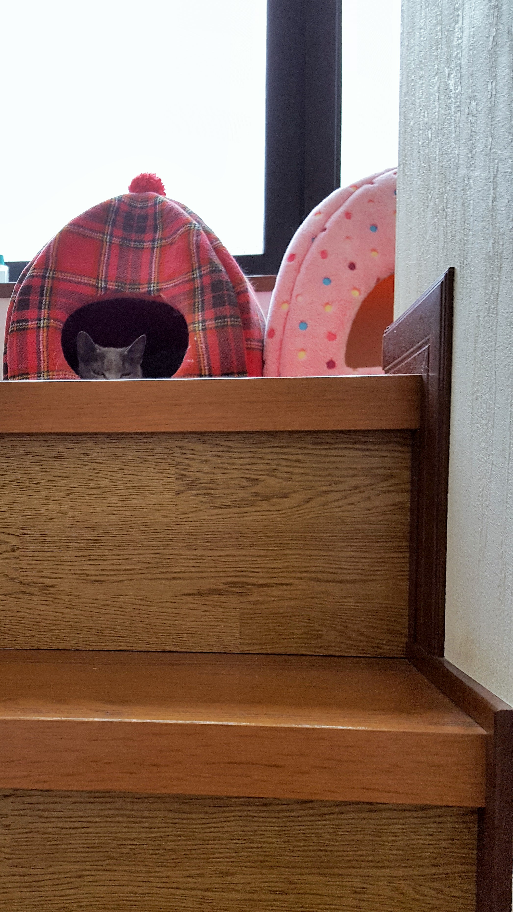It has already reached Kanto area, I heard. Meow, that’s why — this season makes me particularly sleepy. It accommodates hydrangea in blue, pink and white at almost every home around here, mom told me. Well, I’m not interested in stepping into others’ territory, yet please find her collection below. Purr …