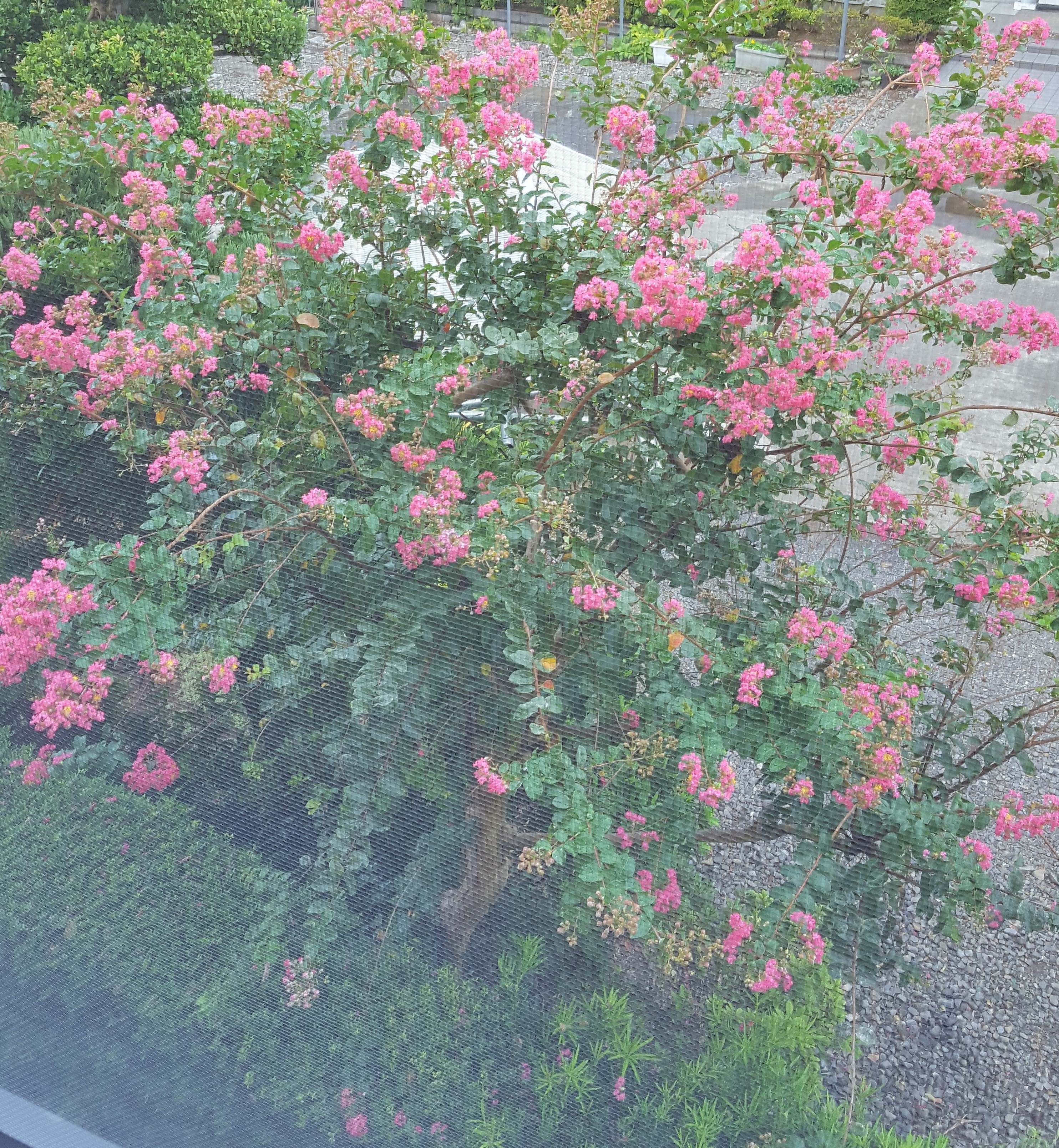 Today’s highest temperature in Ibaraki was just a bit lower than 33 degrees Celsius. Yes, September is such a month these days. Most of Mei-Shun’s generation, sometimes called 昭和人=Showa-jin, people born in our previous era, remember clearer boundaries between four seasons 2 decades before. Maybe affected by global warming, recent summers appear to reside with us until winters approach just nearby. So does next-door 百日紅=saru-suberi, serving Mei-Shun a gift in eyes.