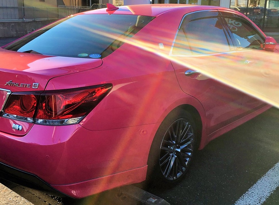 We have finally seen it. It has been taken as a joke for Shin and Mei-Shun — a car named “C.” in shocking pink by T. Mortar Corp. As a famous luxurious car brand, “C.” lines employ white, blue or gray coloring, loved by successful business people. Even in an astonishing shade, it was never expected to be found in parking area of a supermarket. According to Shin, it looks like a taxi in Thailand. Is the owner from the country then? We were a little bit interested in, yet it depends.