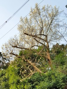 When Mei-Shun walked out of a short tunnel between rice paddy, she found a tree full of white flowers shining on the green hill which accommodates the nearest shrine. It is magnolia, still in buds. Since she started walking exercise from the end of April last year, it has not been recognized so far. She is so happy to see the roster of sacred guardians augmented again.