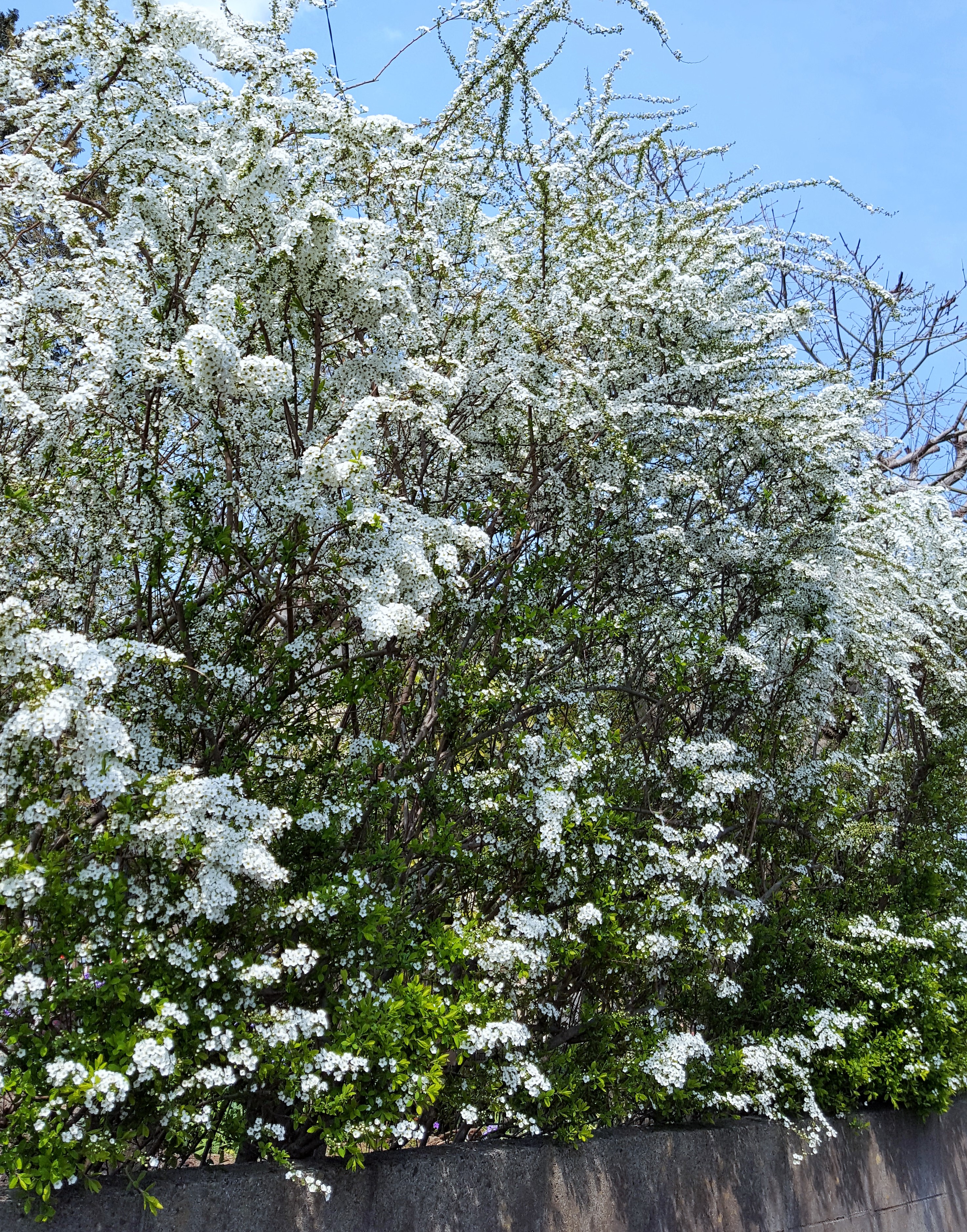 Following magnolia, 雪柳=yuki-nanagi, literally snowy willow began to bloom. Now much of our attention is on 染井吉野 cherry blossom, Mei-Shun prefers 大島桜. Each flower of the latter is a bit bigger than the former, color of petal is all white. She loves white flowers including roses, tulips and 萩=hagi, bushclover. Lotuses are added on this list after she visited 熱川 on weekend.