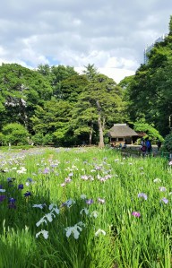 Dumplings rather than flowers? Not for Mei-Shun and Professor S. They met at 飯田橋 Station at noon, strolled toward an Italian restaurant to enjoy good salads, pizzas and pastas. After lunch, they planned to walk down 神楽坂 slope to reach 小石川後楽園 yet shared an taxi under severe sunlight. Pretty irises and hydrangeas were at the beginning of blossom. This nicely cared garden made them almost forget time.