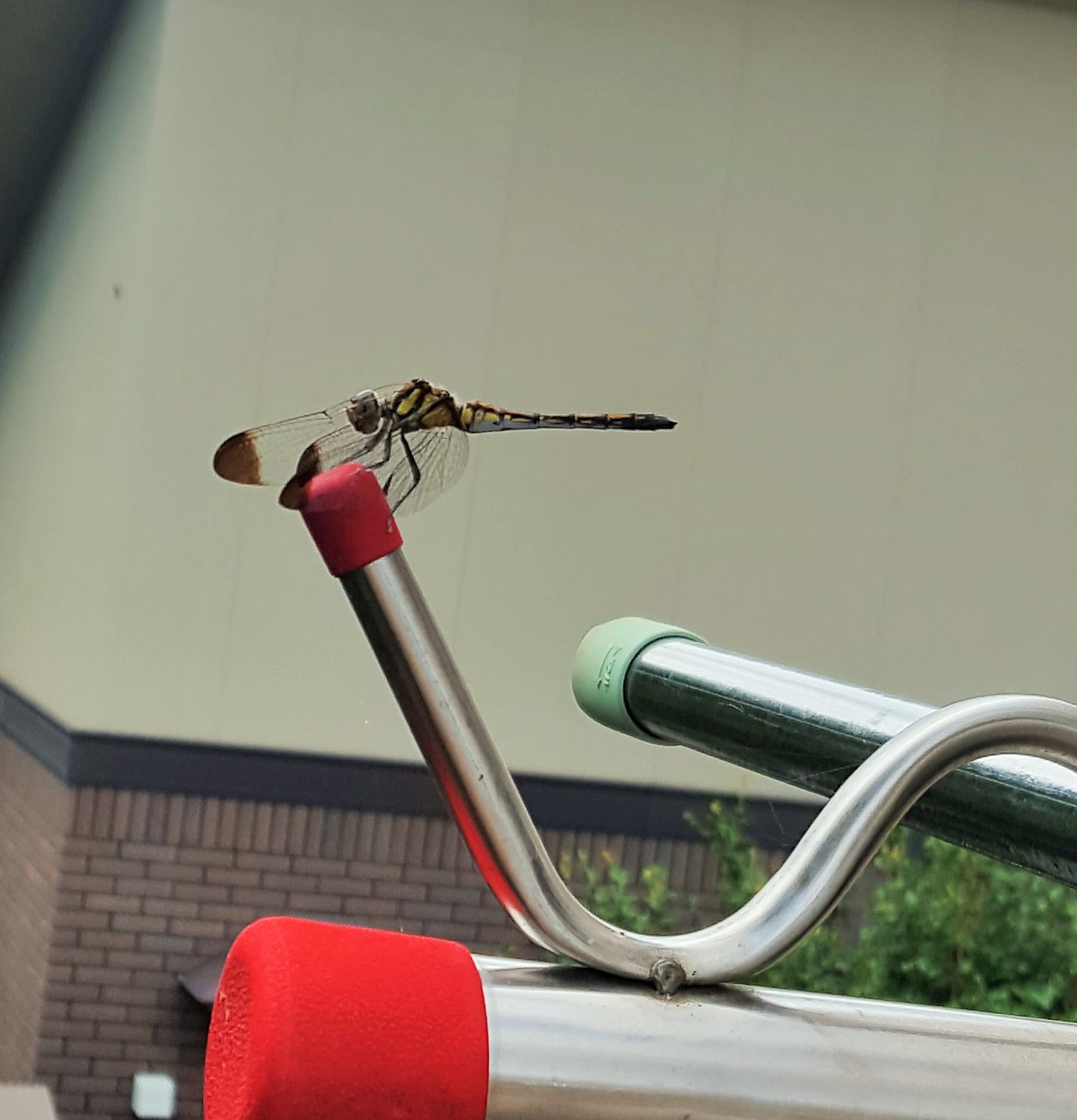 Hello, dragonfly. You would always love to stay on our laundry stand, or on car antennas especially when we spread water to cool them down in sunbathing. Actually, following photo was taken last week when it was clear. Their transparent wings seem to work better on such days, not in the rain. Mei-Shun feels so sorry for them, with weather forecasts calling current one the coolest obon in 40 years.