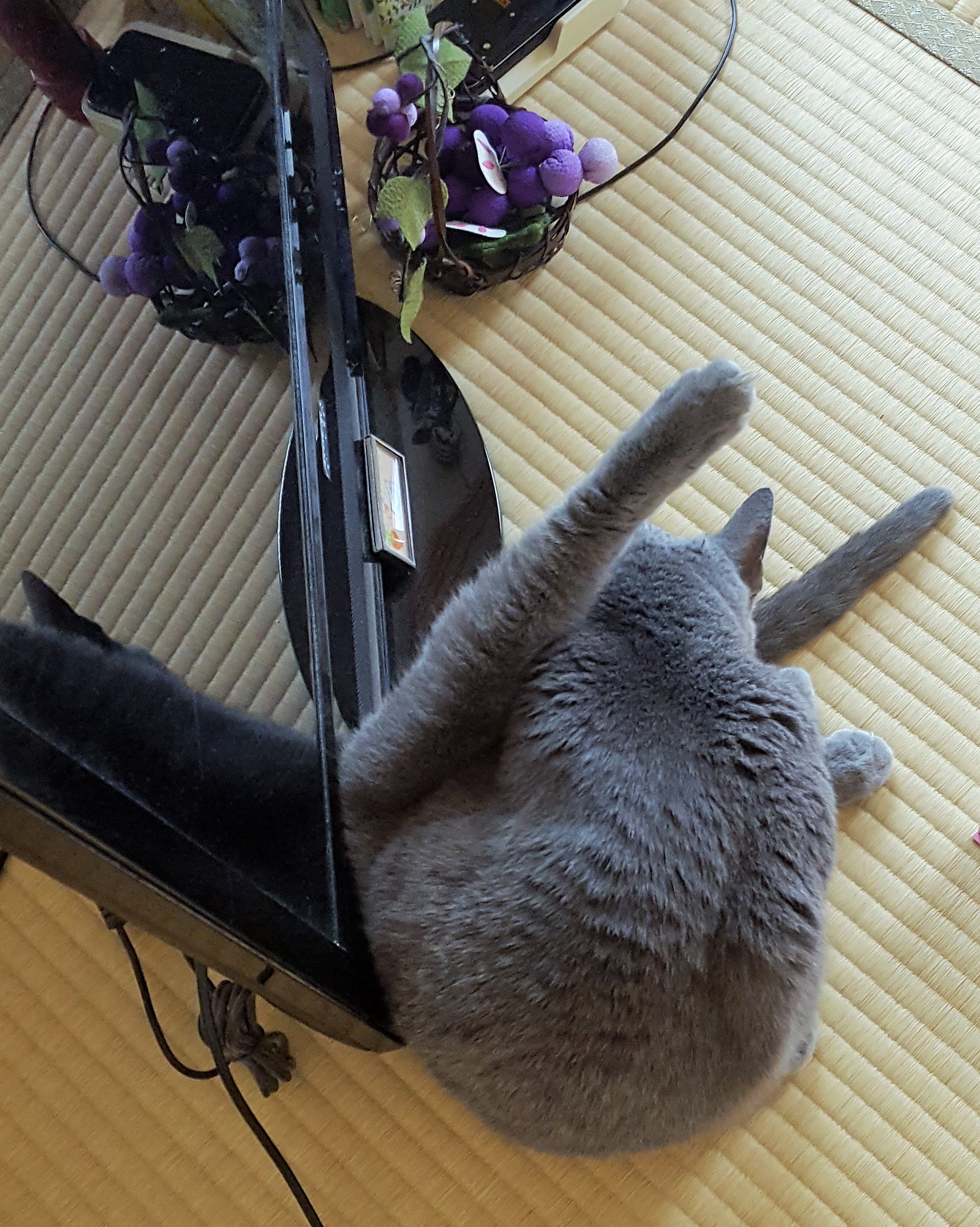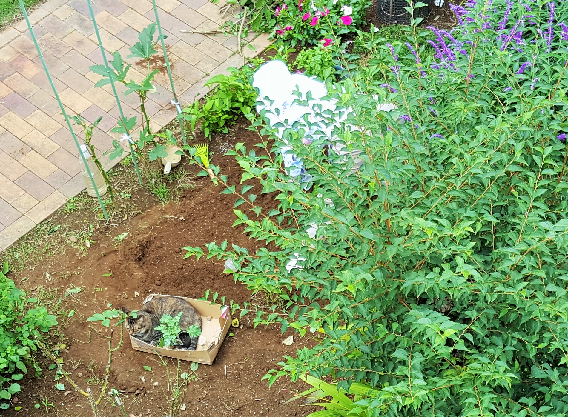 Sunny autumn days contribute well to mom-in-law: they are indispensable for her hobby to take care of our garden. When Mei-Shun hung futon mats in southern balcony, she found Tora-chan serving like an attendant. Yes, an empty box is always yours. Oops, sorry to interrupt you, Ms. Mantis. Mei-Shun saw you fly for the first time — or she did not know you can do it. Looking frail onto your back, wings really make good job.