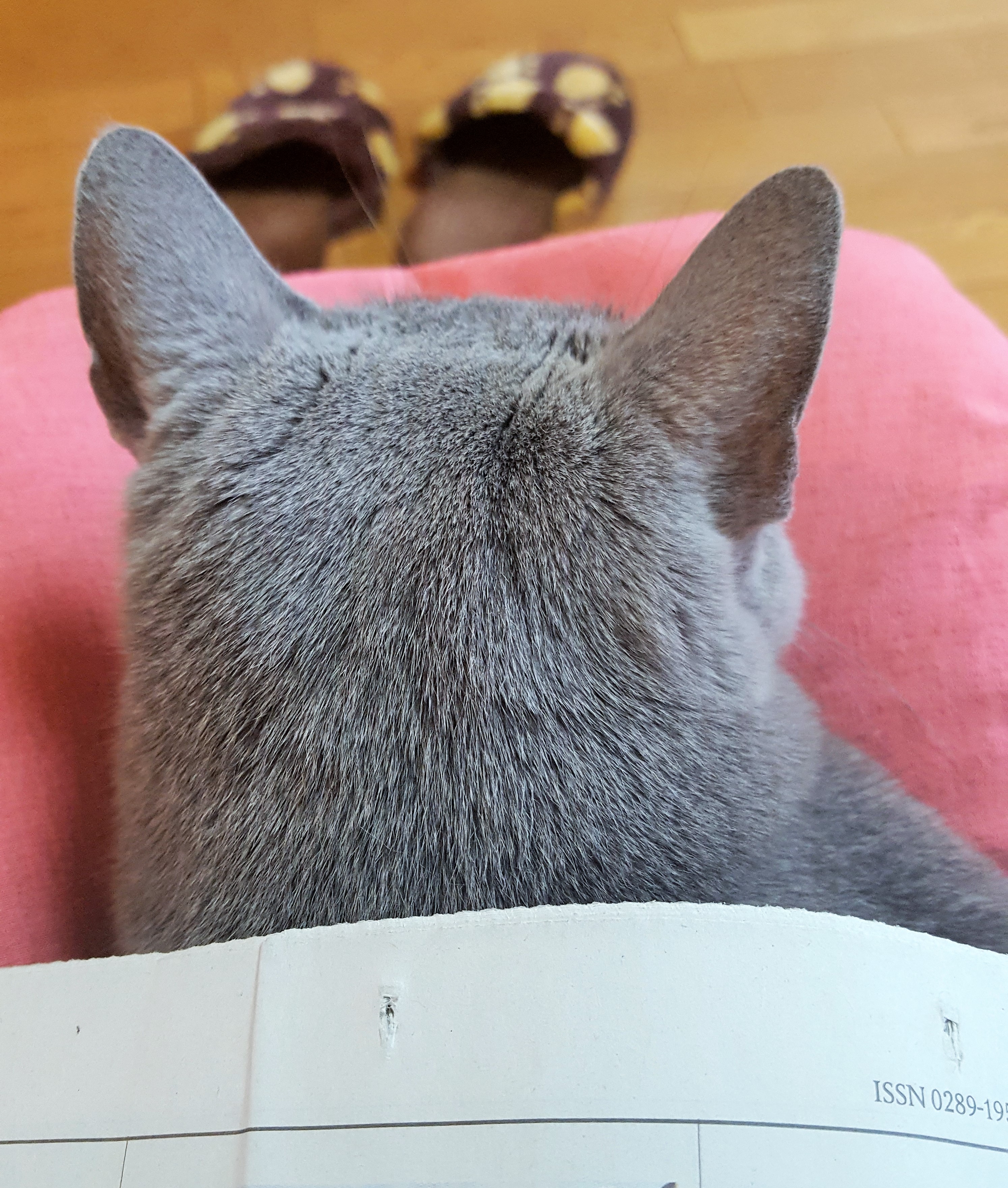 StandardHi, Tora-chan. Did you throw mom-in-law onto a tatami mat to occupy that chair? A fluffy cloth with black dots is to make a soft toy of your species, isn’t it? You look so graceful on it. Such a princess does not need to come down to a camera meowing — your Highness could be changed into lowness. Please kindly let Mei-Shun enjoy this heartwarming picture.