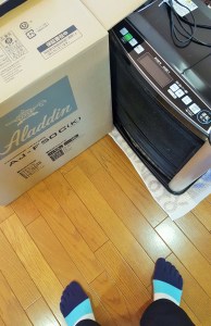 StandardSince we have 立冬=ritto, the first of winter 二十四節気 today, Mei-Shun decided to wake Mr. Aladdin up. So heavy and powerful he is, she must be very careful. In order to protect tatami mats, she spread them with two bathmats. Tipping his cardboard box toward her side, she put it on a mat before bending her knees to hold and set him on another. Now, it’s become easy to pull him to the living room.
