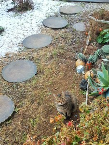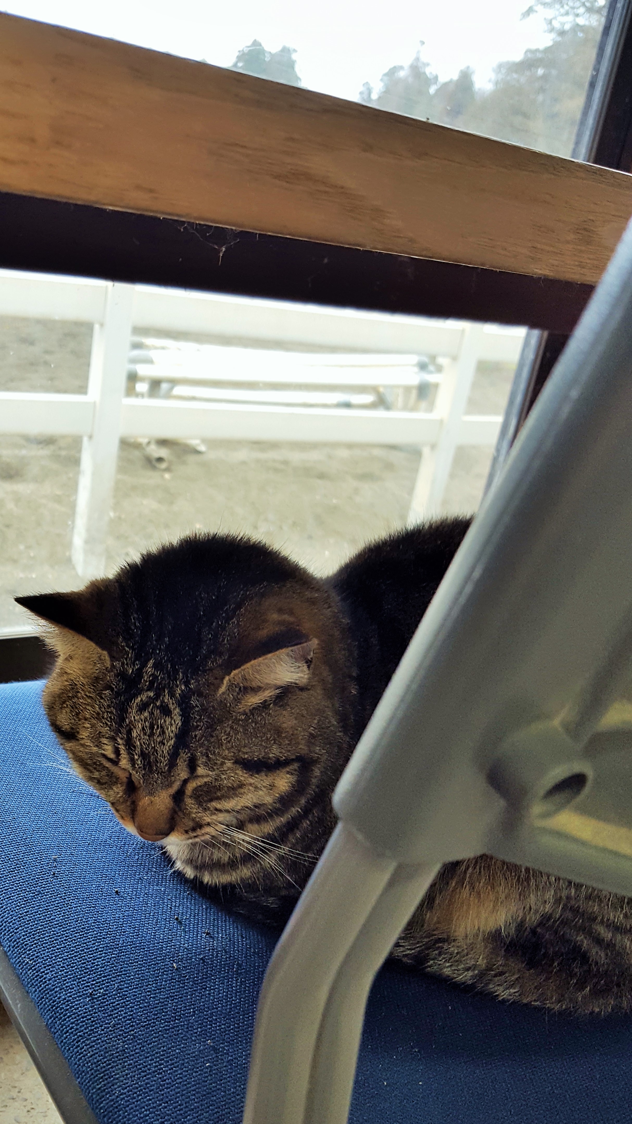 Our horseback riding club keeps three cats as well, called Karin, Collin and Pudding. Here is tabby boy Karin-chan followed by a black girl and another with black patches on white coat. The only boy knows well who would give him a treat, comes to Mei-Shun when he wants some. And please, kind follwers and cat fanciers find how he and Tora-chan look like with each other.