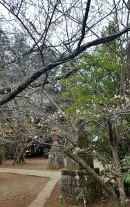 Mei-Shun loves this lovely little flower from her childhood, when she walked to nearby woods almost every day. They seem to close petals when it rains, while patiently look for sunlight under heavy clouds. Even gale does not matter to them, they stand still along this windy lane between rice paddy. Now she reached the nearest shrine, going up stairs to find a white plum in half blossom.