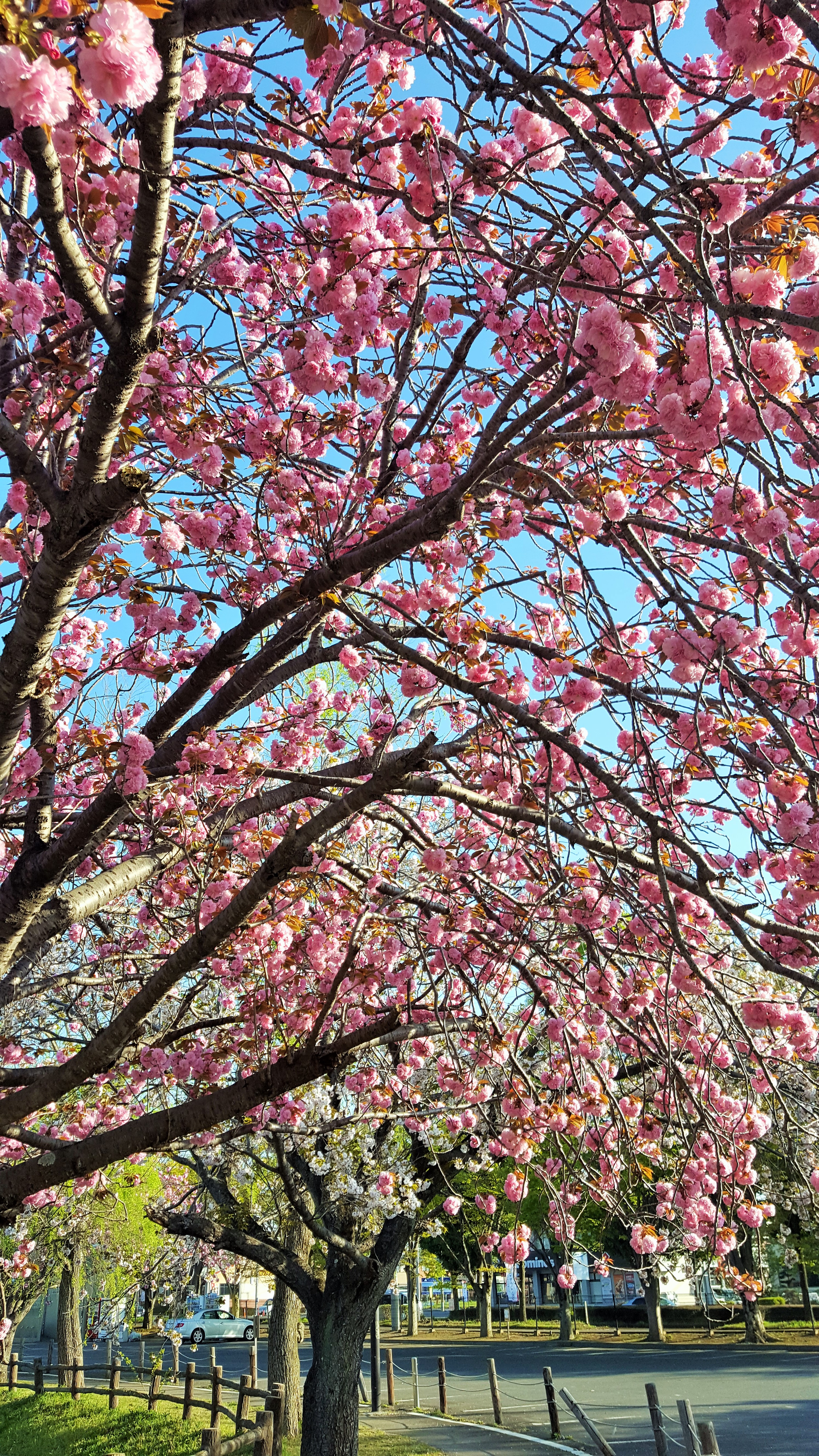 Just terrific, aren’t they? 八重桜 in 乙戸沼 Park is now in 80% blossom, seems the best for Mei-Shun. She drove Shin to the nearest station in the morning, turned to the opposite direction to home. Surrounded by aromatic pink of cherry and refreshing green of shell-like gingko baby leaves, she did some stretches. Walking had to be spared to reach her favorite hair salon in 高輪, Tokyo on time.