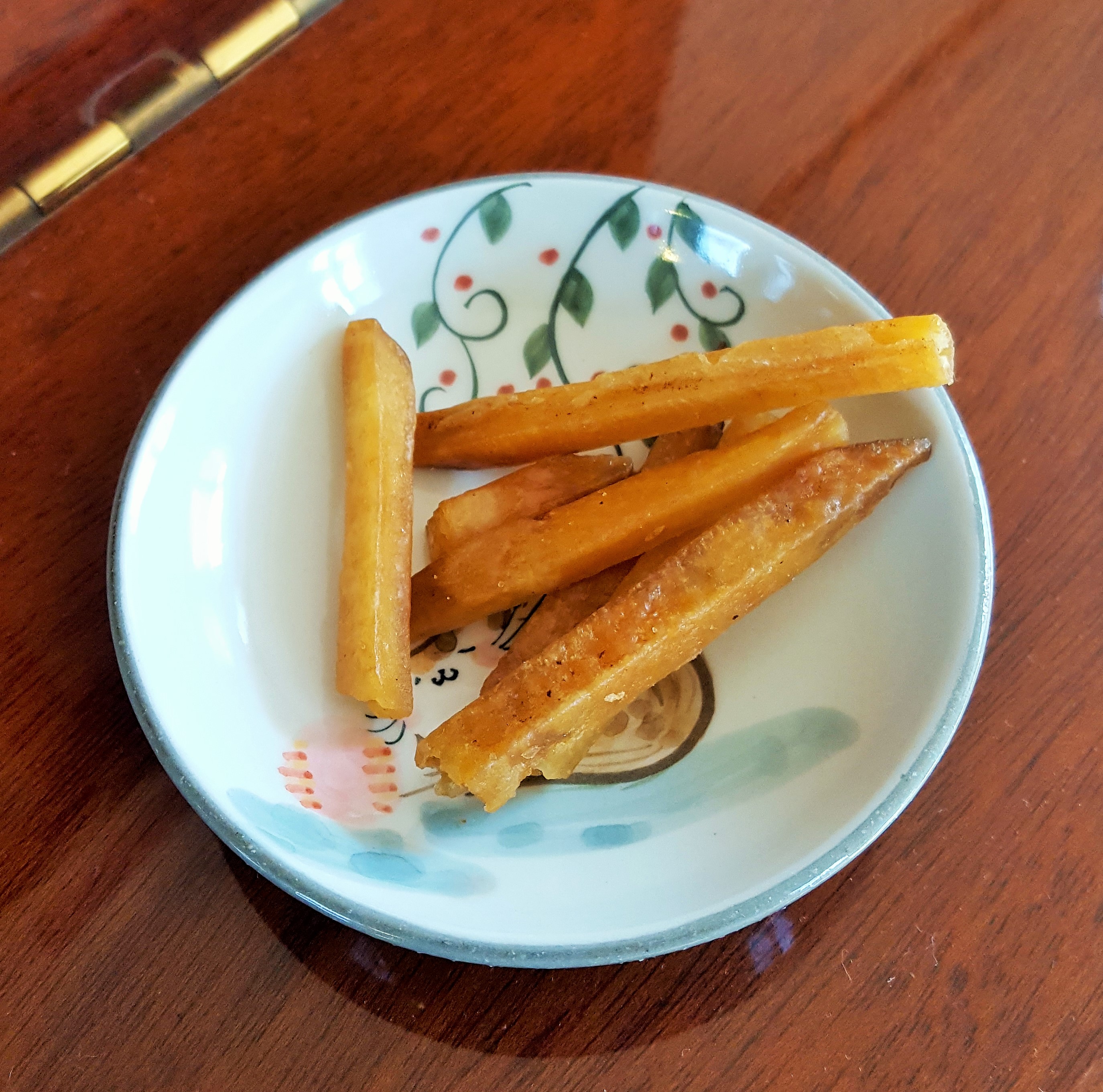 StandardHere is 芋ケンピ= deep-fried and sugar-coated sweet potato. Mei-Shun enjoys it by various makers, continues to compare one with another. This time they are processed in Kumamoto, where one of her favorite mascots Kuma-mon comes from. Not so sweet, makes her try more. What a temptation, when she would like to put off 2 bags of sugar within this year!