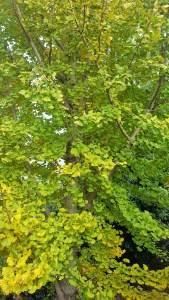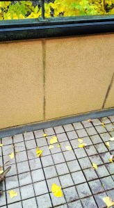 Sleepy one in our backyard finally started to turn into yellow. It is so rapid that Mei-Shun finds him in different coat every day. To her disappointment, it rains too hard today to … oh? It stopped for a while, gave her a chance to take photos outdoors. Brown leaves on balcony floor are to remove only, charming ones in clear yellow to pick up and dry.