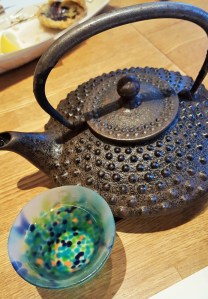 Shin took a half-day off today, met Mei-Shun at Tokyo Station in early afternoon. They went up by an escalator, window-shopping winter items, toward restaurant floor of a department store. Hmm, tempura looks the best for lunch. He ordered 3-course ones including rare 大浅利=oh-asari, a shellfish much bigger than normal size. And 大山=oh-yama sake for his wife who won’t drive after this.