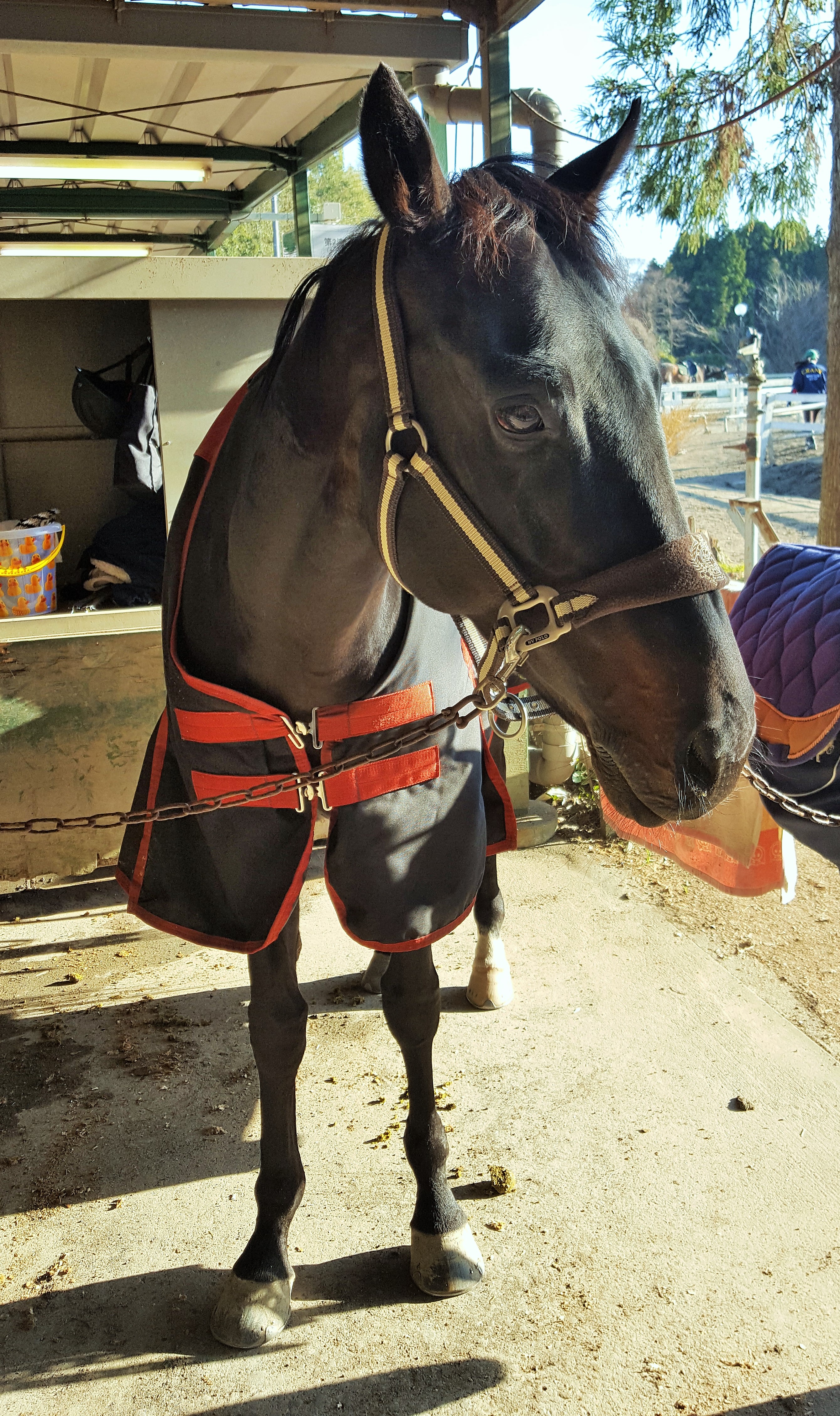 Here is Thai-matsuri, retired racehorsey who has joined our club recently. Mei-Shun fell in love with such a lovely boy in black-brown, decided immediately to help Ms. I to train him as she did for Madoka-chan before. He was born in 2011 from the famous grandfather Brian’s Time while father Time Paradox. She therefore wants to give him a new name Tea Time, after these great fathers.