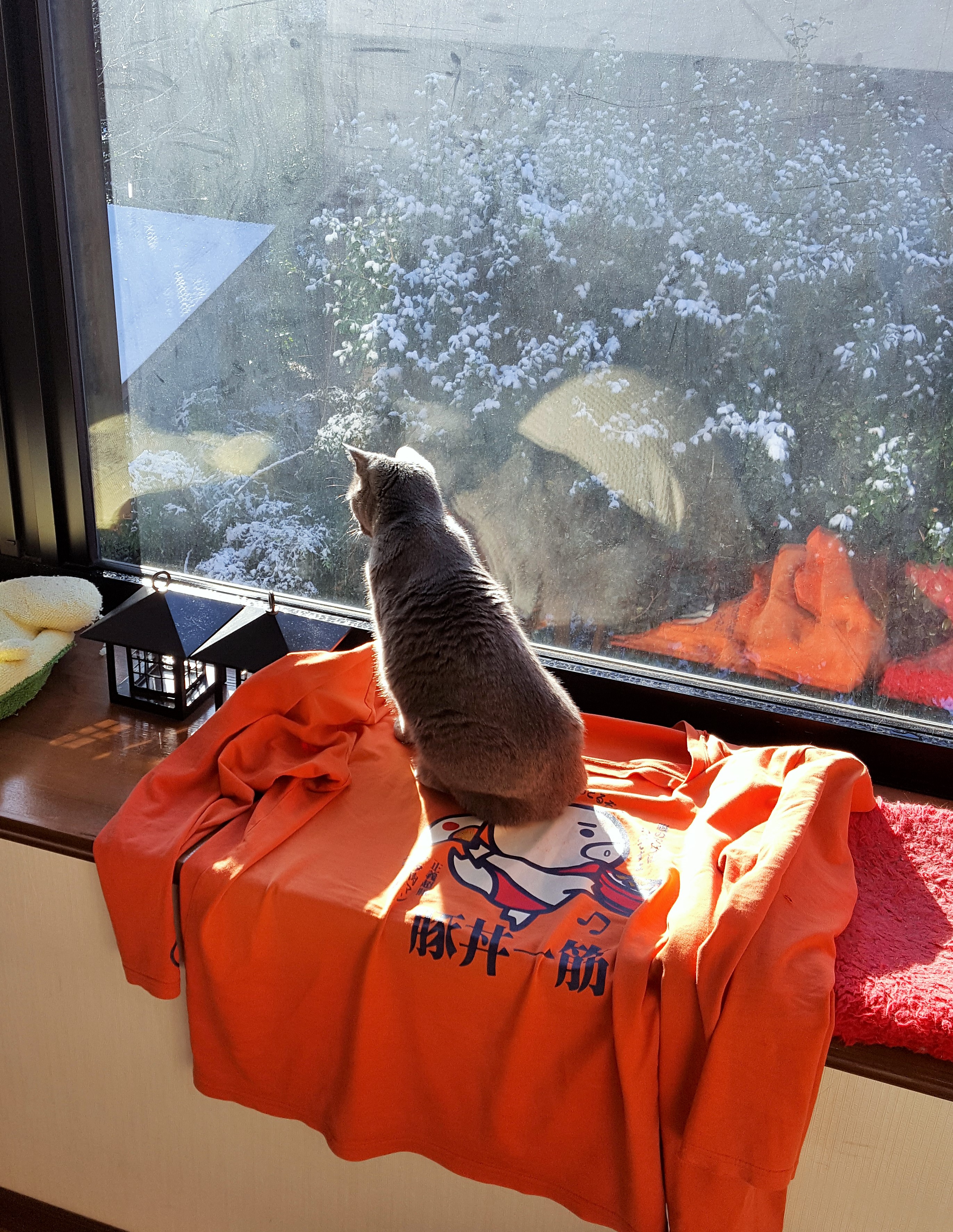 StandardYou finally bloomed in full. With you 13 sisters, the only scape of this winter looks so heavy. However, Mei-Shun knows that for such one full of flowers, pot is the best place to keep fresh. Please, therefore, give us your patience a bit more. Since last night saw the second snow which covered all outdoors, you can enjoy sight of curious cat and watered friends for a while.