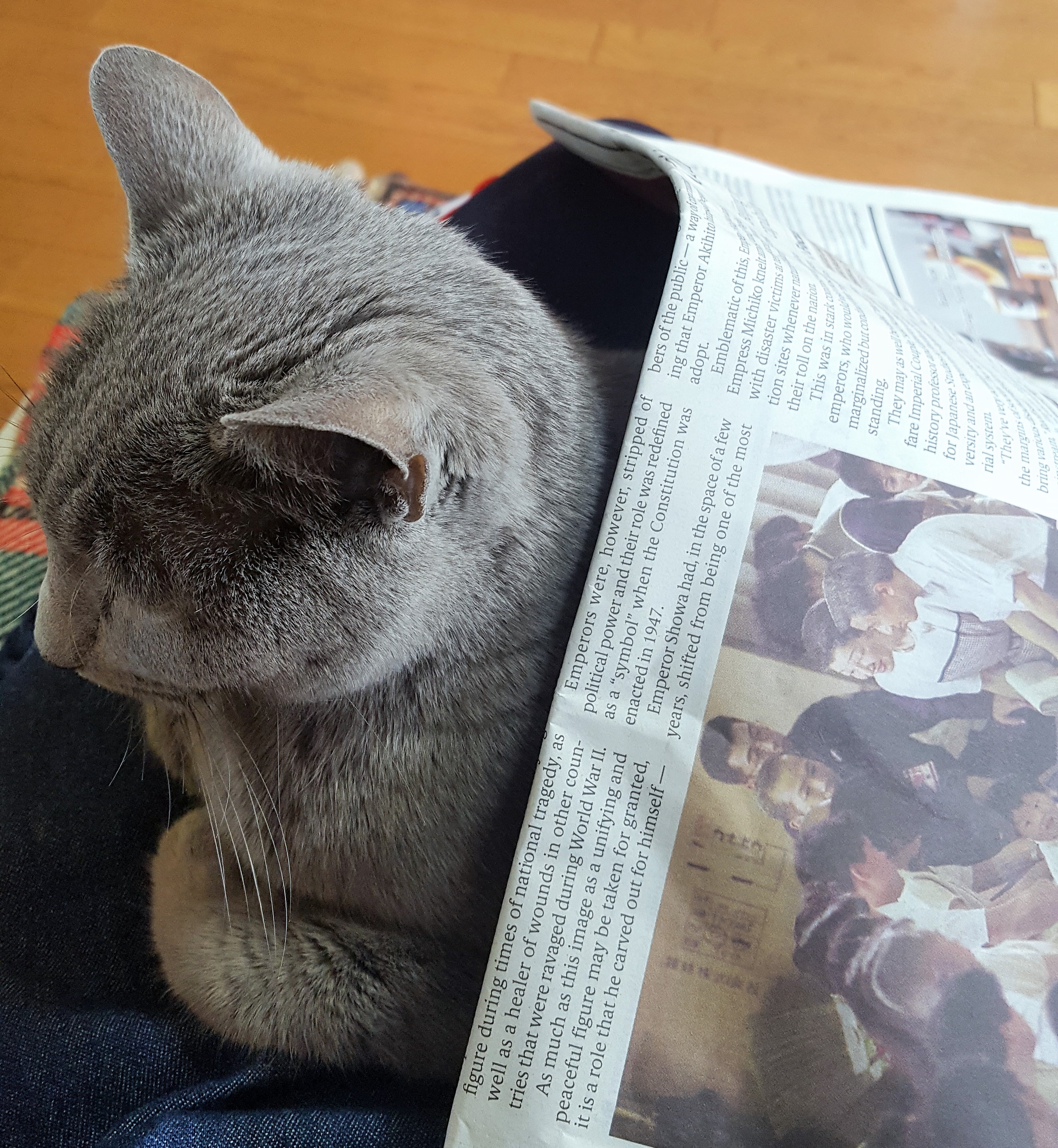 Meow, the era I was born is going. Mom would see it change twice in her life; from Showa to Heisei as the first, to Reiwa this time. She might experience even the third, yet future is not ours to see. Her interest is rather on 銀杏餅=gingko cake, one of the best sweets from Toyama Prefecture, which is due by today. Another 玉天=baked meringue would keep on tasting good over Golden Week, she says. Purr …