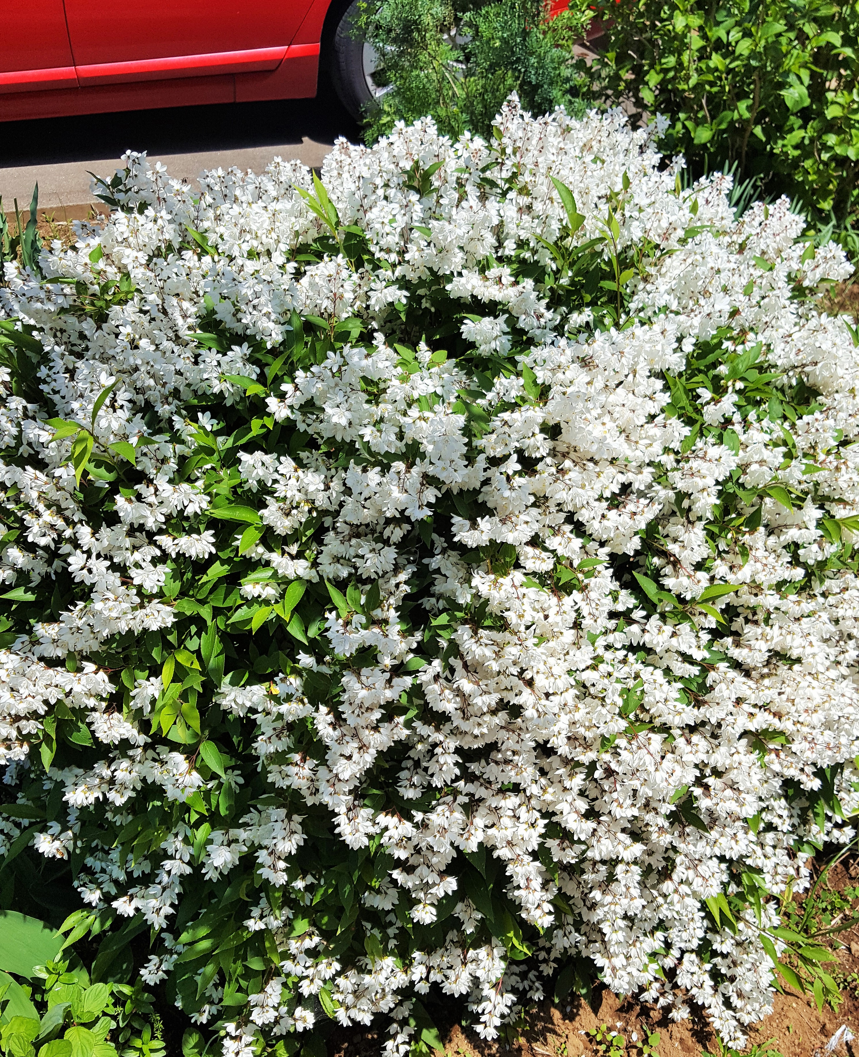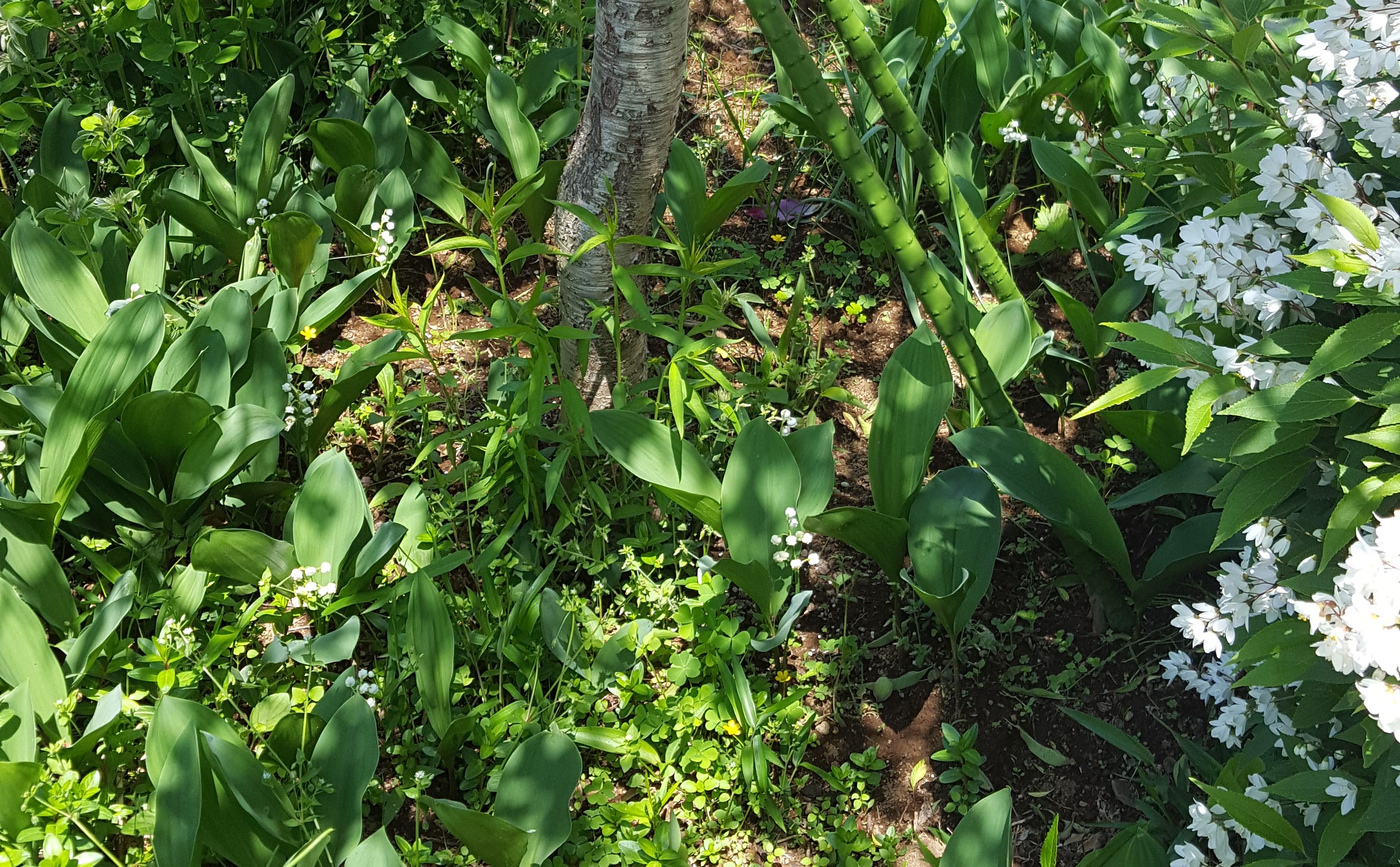 姫空木=hime-utsugi, Deutzia gracilis in our garden is currently in full blossom. Lily bells under Momo-chan or Princess Peach began to give nice scent. Mei-Shun loves white flowers, feeling happy to see them stay lively. And she must not forget to report on Mademoiselle Vert to you kind followers including Prof. S of course. She has bloomed the 23rd and 24th, leaving a few buds still small.