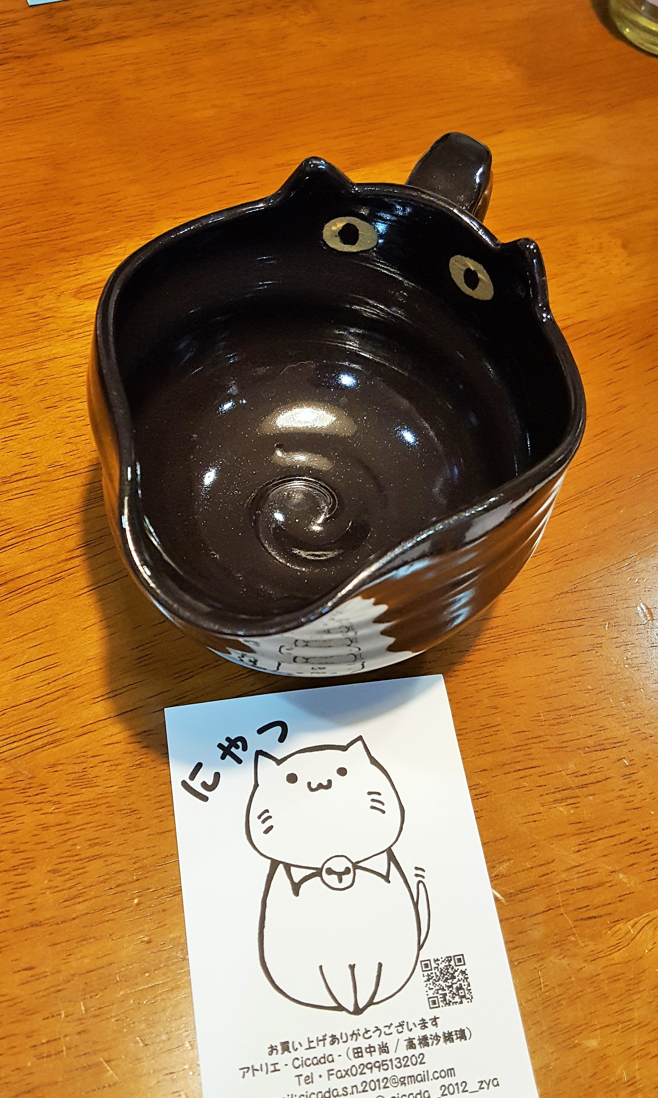 StandardHe, le chat aux yeux d’or, comes from 友部 Service Area on 常磐 Highway. When Shin and Mei-Shun dropped in there returning from 水戸, they were lucky enough to encounter stalls of pottery. Many pretty bowls for natto, fermented soybeans, were featured this time. After scrutinizing every shop, they decided to bring him home. Please help Shin to diet, darling.
