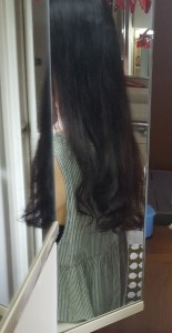Mei-Shun feels it quite gorgeous to let her hair down in the middle of summer. It is normally rolled and bound with choux-choux as soon as she wakes up in the morning. She went to a nearby hair saloon in such a style, got regular treatment before driving for a shopping. Since both places are well air-conditioned, long hair works like a jacket to cover her neck and shoulders.