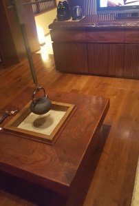 It was the 2nd time Shin and Mei-Shun stayed at 竹泉荘 on weekend. Nothing changed there — beautiful sight, lovely souvenir shop, comfortable hot spring, gorgeous room and meals. Slight changes included the room he reserved this time. It must have been up-graded toward the 5th, roof floor. However, a cloud of calicobacks (!) forced the hotel to close above room, to offer the couple a replacement by the second best.
