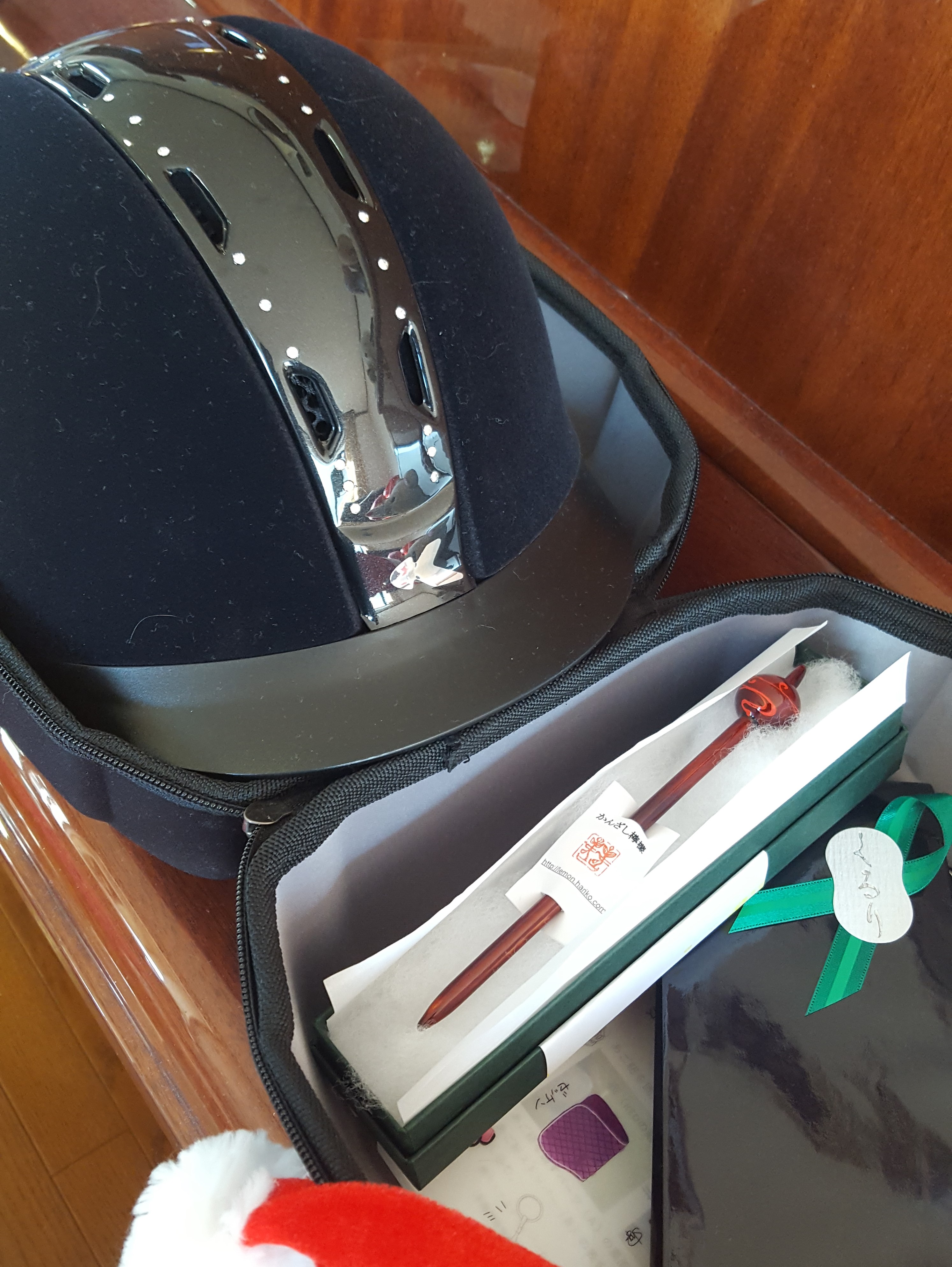 StandardMei-Shun sometimes wonders if she can exactly express her gratitude to Shin, yet please let her say that his generosity, patience and … love is profoundly appreciated as always. Beautiful bouquet full of her favorite colors, too heavy to hold in a silver pot representing their 25th anniversary. Cool helmet for horsey riding with velvet surface and Swarovski stones. Lovely 簪, a kimono accessory coated by Japanese lacquer.