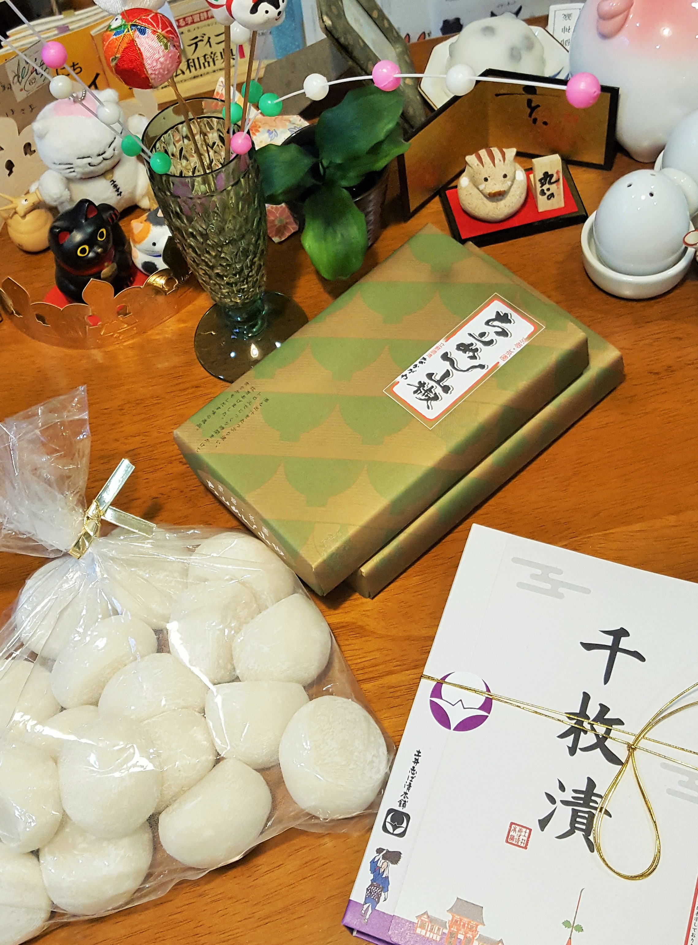 StandardThanks a million, Shin, a hard worker even on weekends. Following are his souvenirs including 縮緬山椒=chirimen sansho, dried anchovy and Japanese pepper and 千枚漬=sen-mai-zuke, 聖護院 horseradish pickles by Mei-Shun’s request. And the best is a bag of cute, round rice cakes. They are amazingly soft and tasty after a whole day, no need to bake to put into お雑煮=o-zoni, our new-year soup.