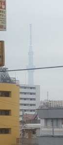 Mei-Shun visited a hair saloon in 高輪, Tokyo today. It rained in early morning, stopped when she went out yet still hazy. 牛久沼=Ushiku Pond had no view of Mt. Fuji, while a unique chimney equipped on a noodle factory was giving lively steam. Skytree pushed its head into low clouds, looked like Port Tower in 神戸 on the way to our capital city. Almost all gingko trees were in bright yellow.