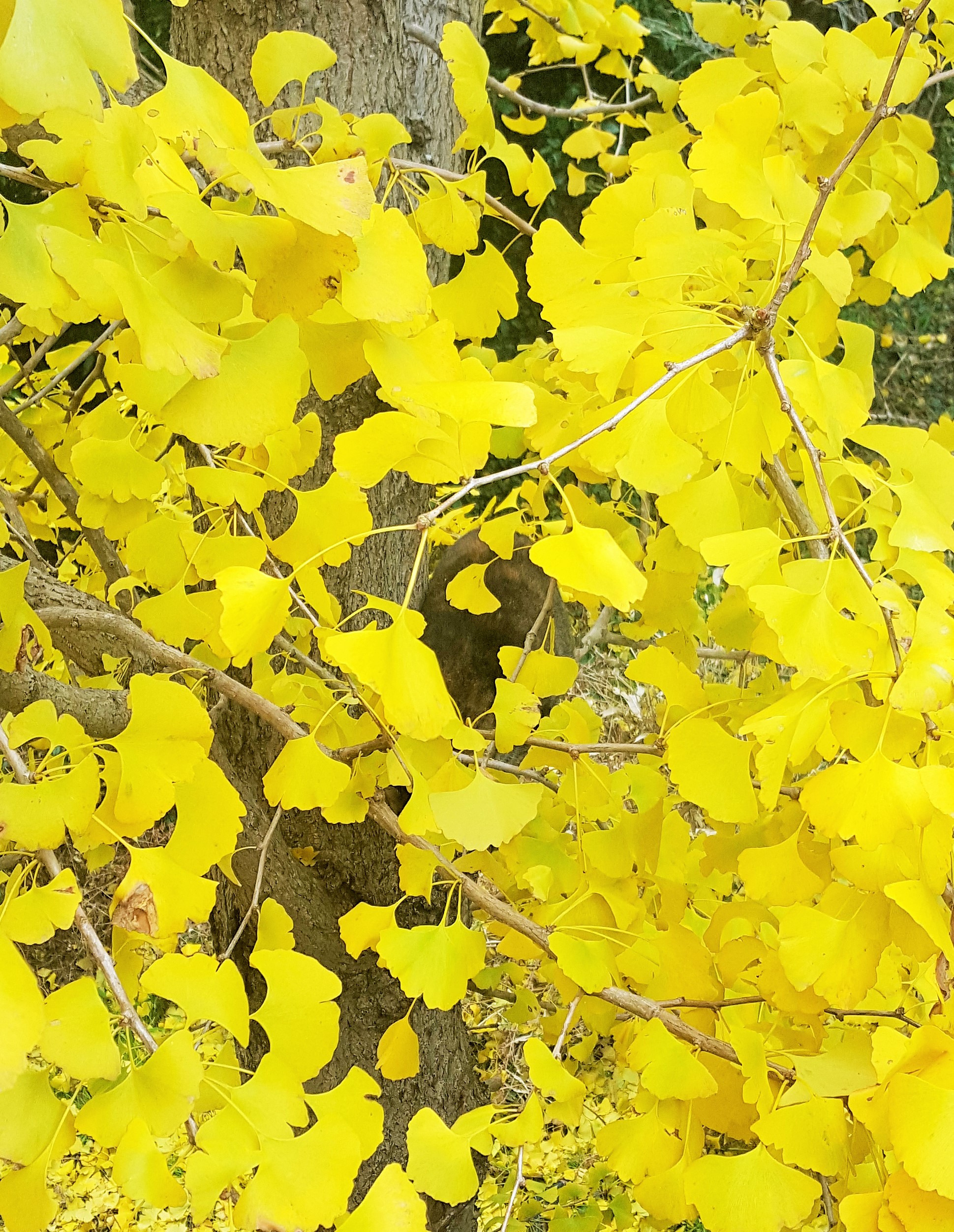Standard… to eat they are. Mei-Shun’s elder sister kindly send a box of pears the other day. It takes a long time to ripe, let her wait with watering mouth. On the other hand, our backyard gingko suddenly turned yellow. She cleaned half of the eastern balcony while just prepared to do another. Nearly an hour later, here are prettier ones spread on “令”, kanji of 2019.
