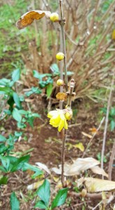 Shin and Mei-Shun visited mother’s home of the latter today. She has one happy matter to report — her beloved father came back. That means 蝋梅=robai, Chimonanthus praecox descended from mom’s garden bloomed on his birthday January 1st. He must have reached 82 years old to enjoy golf, trekking and painting. Still, welcome back to us on such a cute, shining little flower.