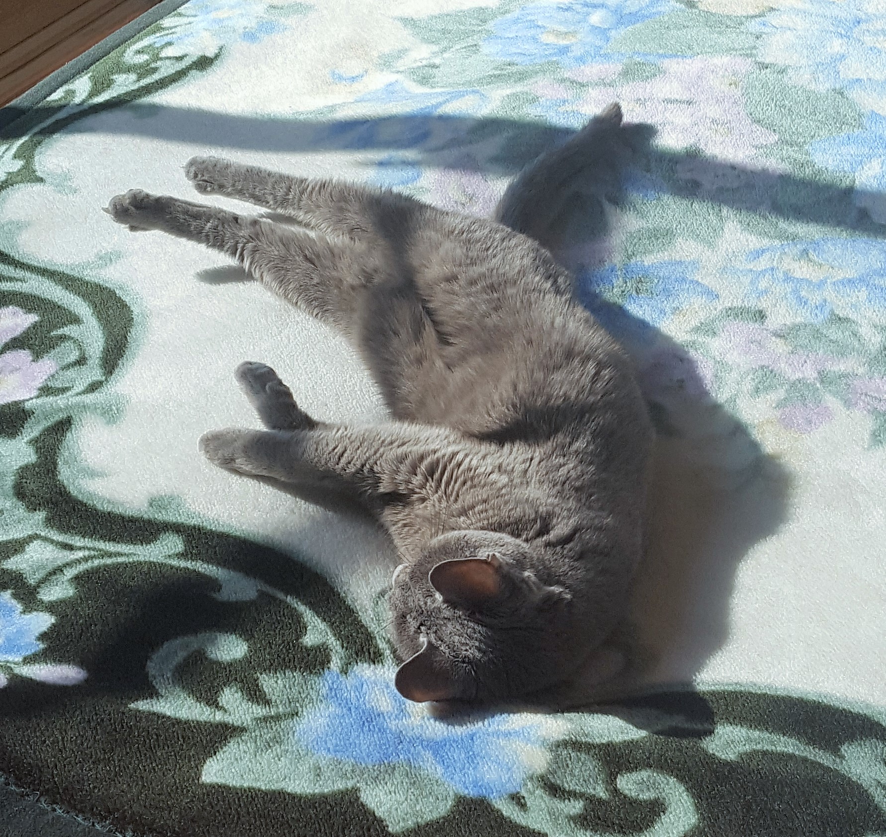 It really is. Mei-Shun hopes such a weather won’t make too torrid summer, when important sport events are to be held in Tokyo. On the other hand, it seems pleasant for her fluffy daughter, mother-in-law and a young 蝋梅 tree in the garden; the first is satisfied with sunlight on a blanket, the second is happy to take care of garden plants including vegetables, the last soon opens the 5th bud among 12.