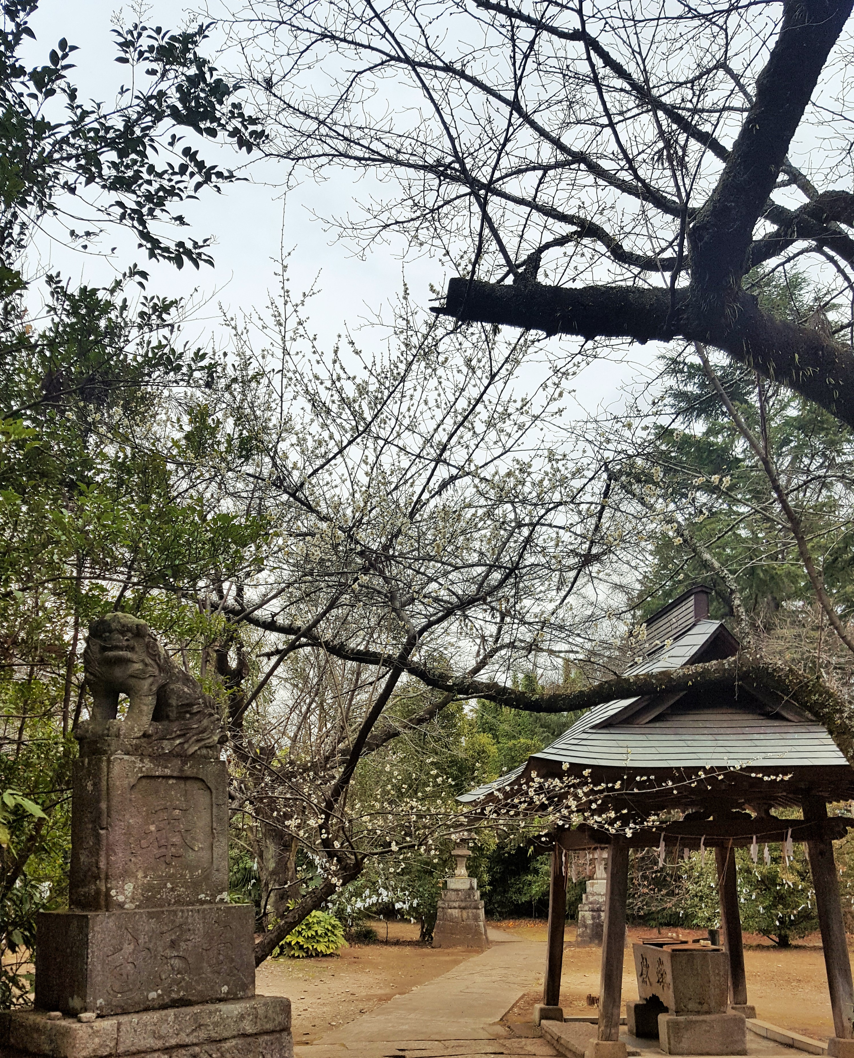 StandardWe have 雨水=usui, the 2nd of spring 二十四節気 today. It means snow would shift into rain, while 2020 seems already to be warmer. Mei-Shun enjoys plum blossom through an eastern window at home, appears in person at the nearest shrine. The latter accommodates two plum trees bloom in white, yet she has not recognized one just beside the front torii gate.