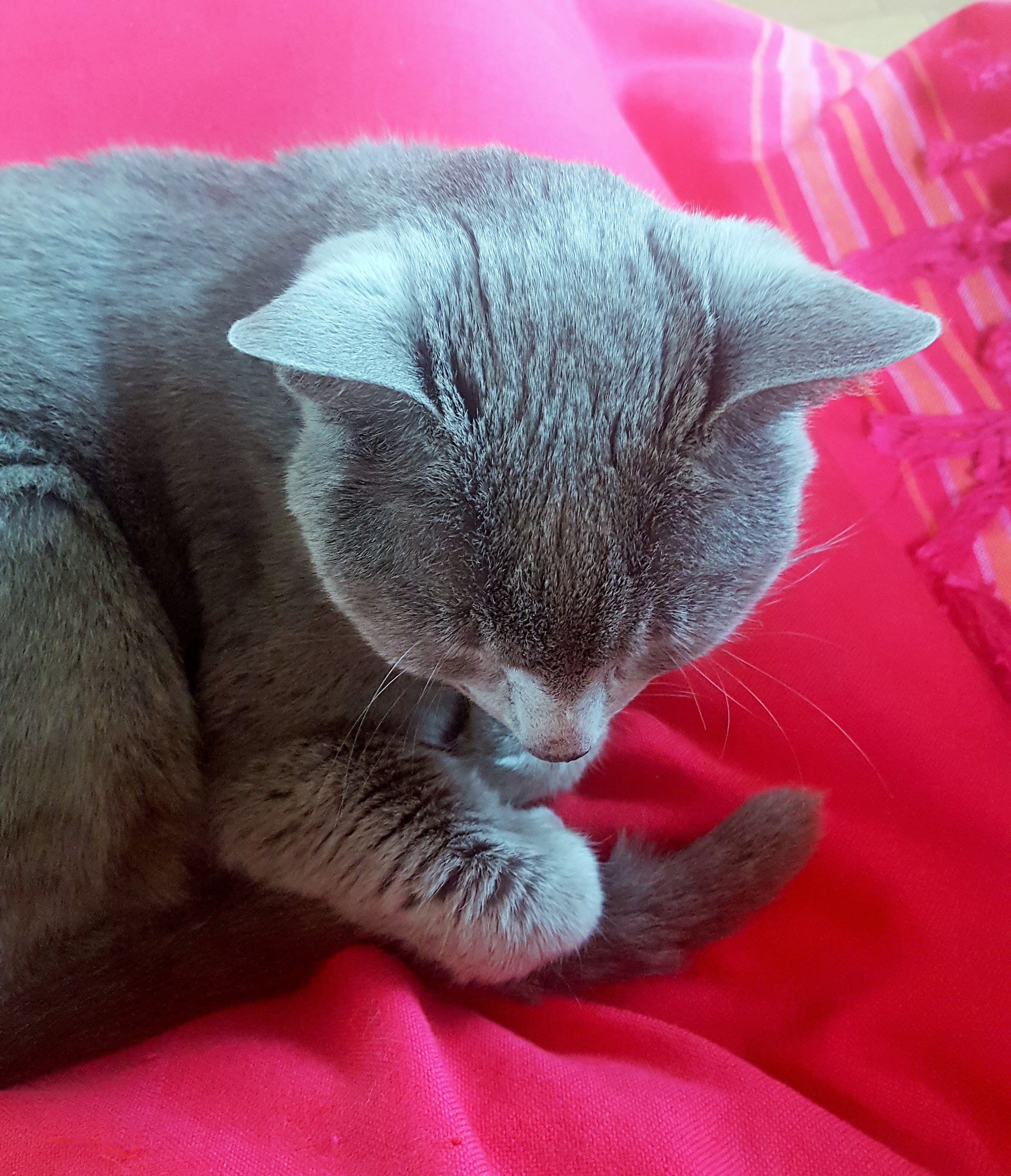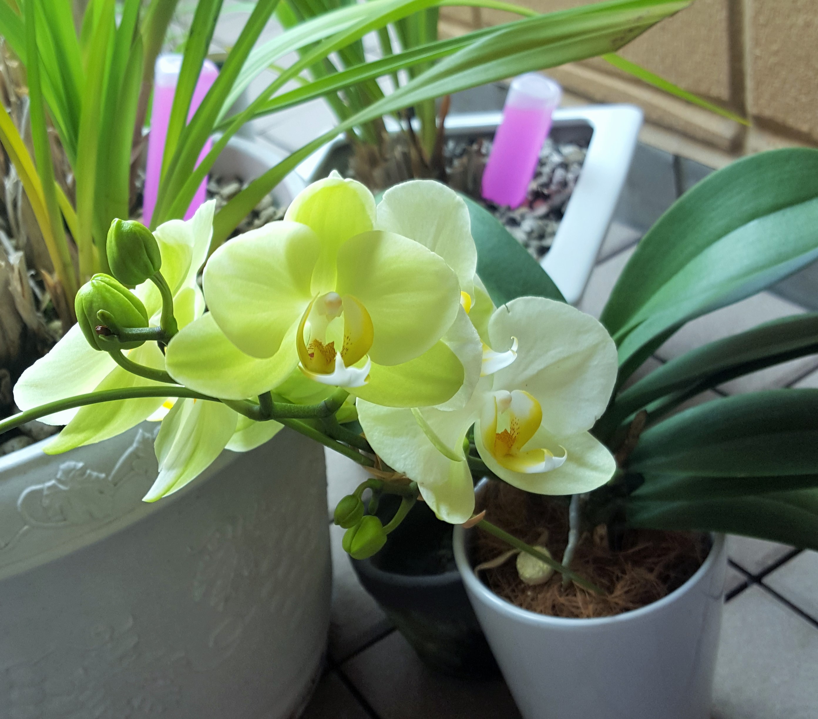 The 6th mademoiselle of mom’s orchid bloomed, purr. She told me that we look like each other. They are smaller and greener than elder sisters, just after opening into full — lovely equilateral triangles. On the other hand, my face is a fluffy inverted triangle in silver-blue shade when I relax on mom’s legs with ears turning downward. Do you kind followers agree with her?