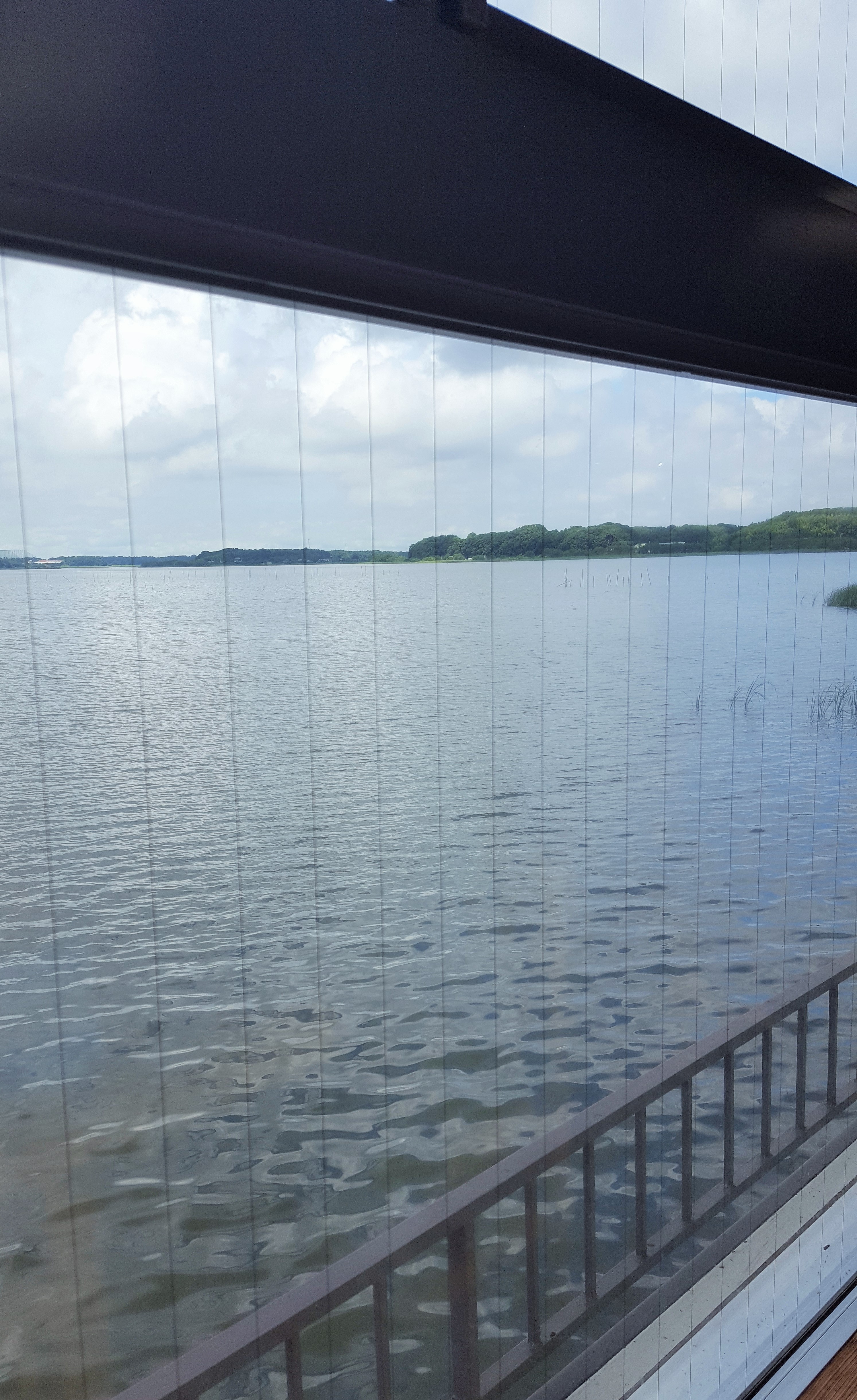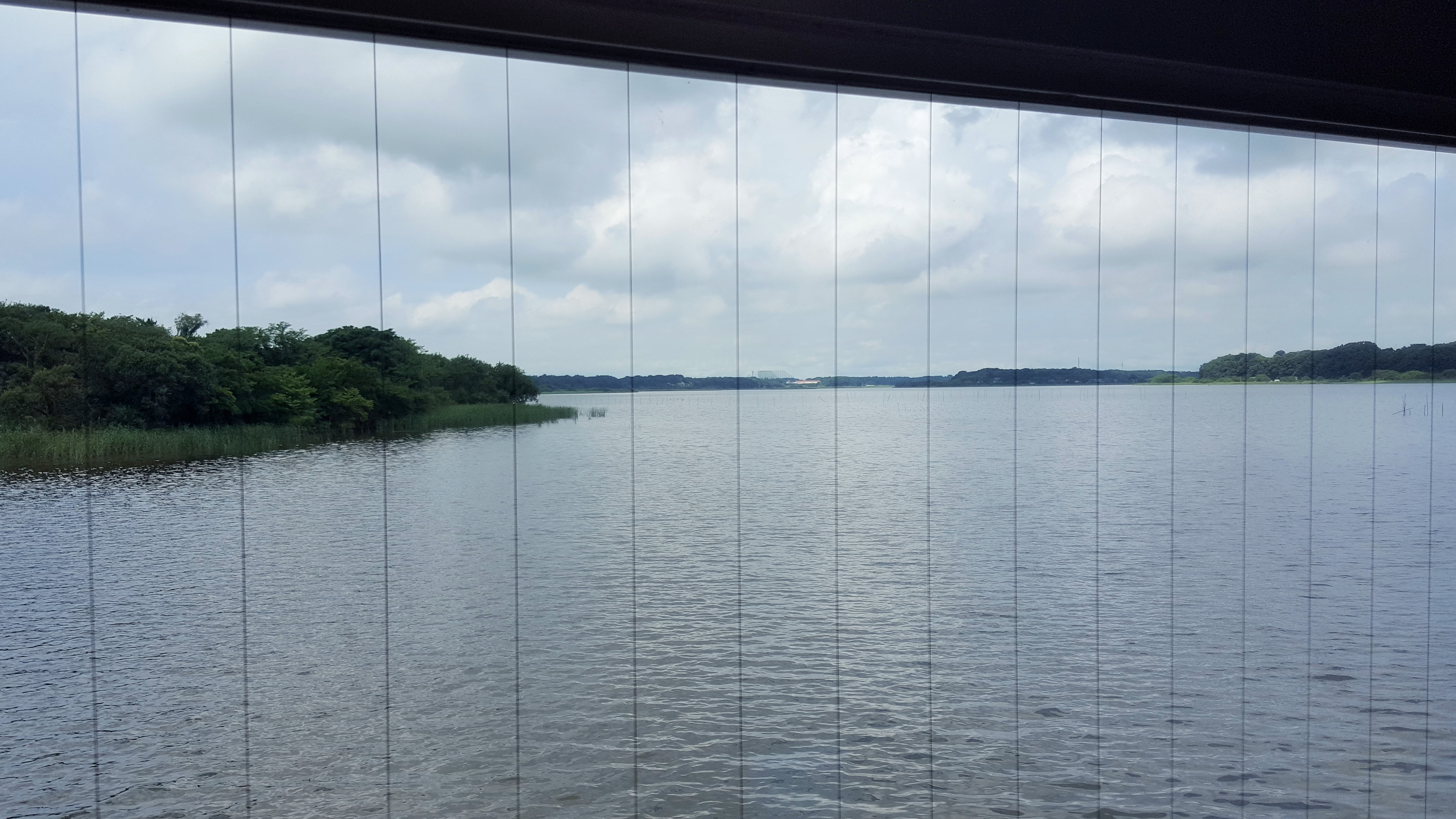 Shin, mom-in-law and Mei-Shun ate out yesterday. 鶴舞屋 serves good baked eels and nice view of 牛久沼 Pond through wide windows. Weather was very unstable; sudden shower, abrupt stopping and clear sky came after one another. Still, they enjoyed above delicacy chatting in whispers. Maybe because it was the last of 4 serial holidays, tables were almost fully occupied by several other families including young children.