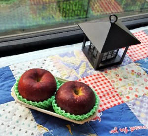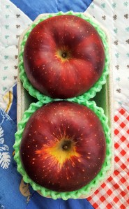 Following apples are 秋映=aki-bae, meaning reflection of autumnal beauty. Mei-Shun loves this breed which became available at supermarkets from several years before. Crispy, a bit sour but sweet as she prefers, while shin does soft, too much matured ones. Such dark red might reminds you of many trees in current season — found even in a little park 5-minute walk from home.