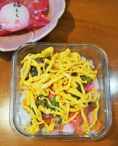 Mei-Shun loves it, mainly for simple and lovely sweets including ひなあられ=hina-arare, 白酒=shiro-sake, etc. The former is white, pink and green-colored puffed rice coated with sugar, while the latter white sake. Oh, she found it is different from 甘酒=ama-sake; 白 is alcoholic using もち米=special rice for cake, yet 甘 alcohol-free made of normal one.