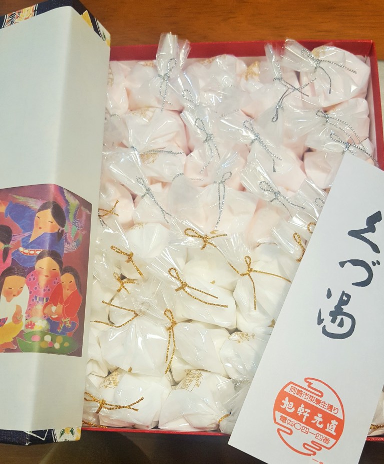 Purr, mom stays with me at home all day long. She went out yesterday morning, came back around tea time. Her oden simmered vegetables and fish balls are in a pot, continued to be boiled in dashi soup while added other ingredients. It became her meal after getting on a scale. What is the reason for your smile? Meow, a small bag would be taken from a 桜葛湯 box as dessert.