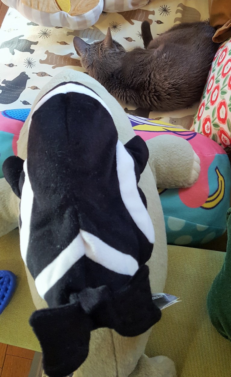 StandardShin went on a business trip to Nagoya, had to catch a train departs around 6 : 00. Mei-Shun drove him to the nearest station, found a big gold medal over railways. Yes, we would see the 2nd full moon of 2022 tomorrow with 大安=tai-an. Even if a 仏滅 today, it helps us to enjoy anything, anytime. Oh, Mikan-chan, do you agree with mom? How cute you are on a cushion!