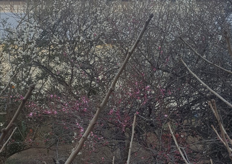 11 years have passed since we experienced an enormous disaster. Mei-Shun offered a moment of silent prayer at home with Mikan-chan and Ms. Piano. It was freezing both in body and mind at that time, while warm enough to feel like in the middle of spring today. Backyard plum trees gives a lot of white, round petals followed by ones in bright pink. A lemon moon began to shine high in the sky.
