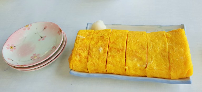 Shin, mom-in-law and Mei-Shun visited a restaurant serving grilled eels. This delicacy is popular on summer 丑の日=Day of the Ox during 土用=doyo. Yet oh, it starts from tomorrow to continue until one day before 立秋=risshu, the 1st of autumnal 二十四節気. They therefore went too soon for a week, how nice a mistake! A big egg roll would also help them to keep lively.