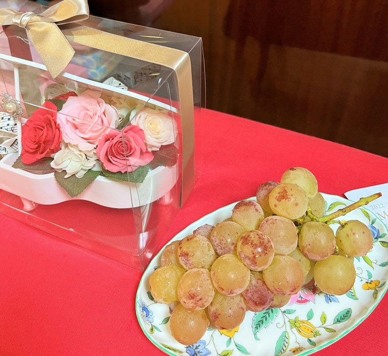 Here is 紅環=beni-tamaki, whose pretty looking and sweetness moved Mei-Shun so much — delicacies come not only from kitchens but farmland. She is a fruit lover like her beloved father, while sweets are quite liked by mother’s side as well. Why does she continue to talk about dessert? It is because she deserves it tonight by labor indoors and dance outdoors.