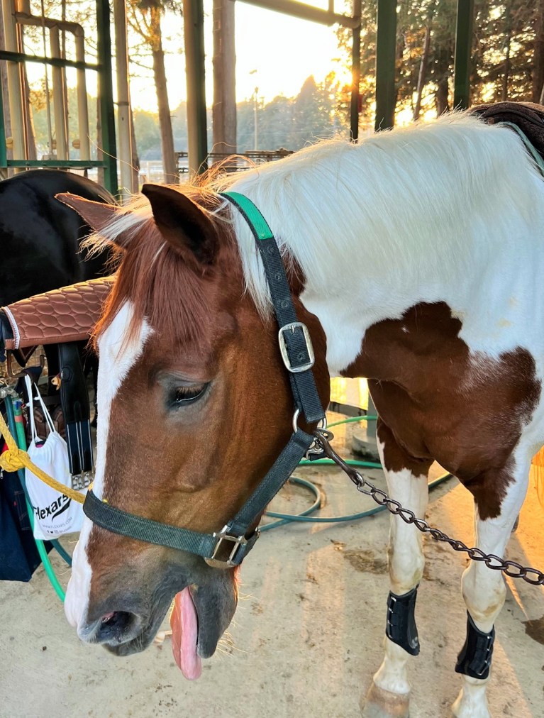 StandardHere she is, not a ram while named after. Mikan-chan and Mei-Shun need no spurs to ride this dark bay girl, only a short whip. That is same to Mademoiselle Angel who would become their partner toward trot at least once a week. By the way, where is the bag she put apple peel within? Other items were found scattered on the ground after a lesson. How mischievous those crows are!