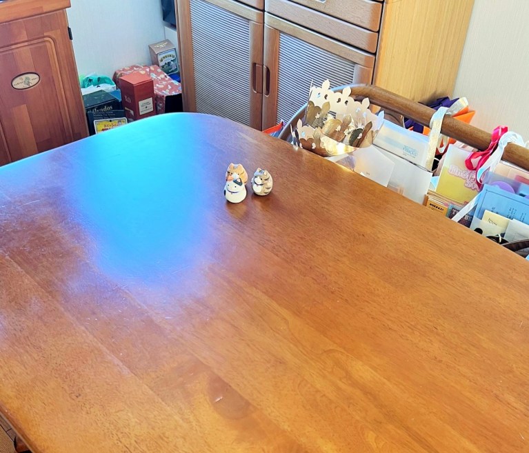 Mei-Shun cleaned up a table full of tiny items including dried flowers, photos and works by Kaori-san. Solar and lunar days of Christmas, New Year and family birthday have all passed, our fiscal year would start soon. It was just before leaving for Osaka on weekend, let her feel refreshed. 3 cats made of 桐のこ=kiri-no-ko, paulownia chips always stay here, never depending on 干支 of the year.