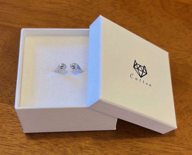 StandardHere are the cutest paws of Mikan-chan: Shin’s gift to Mei-Shun on their recent anniversary. Easy to put on, same to take off — convenient for shampoo, with their fluffy daughter who is fond of catching hairs. In contrast 眼差しの貴婦人 on her left finger is noble enough never to disturb any actions. However, they often share rotating from back to ball of ring fingers.