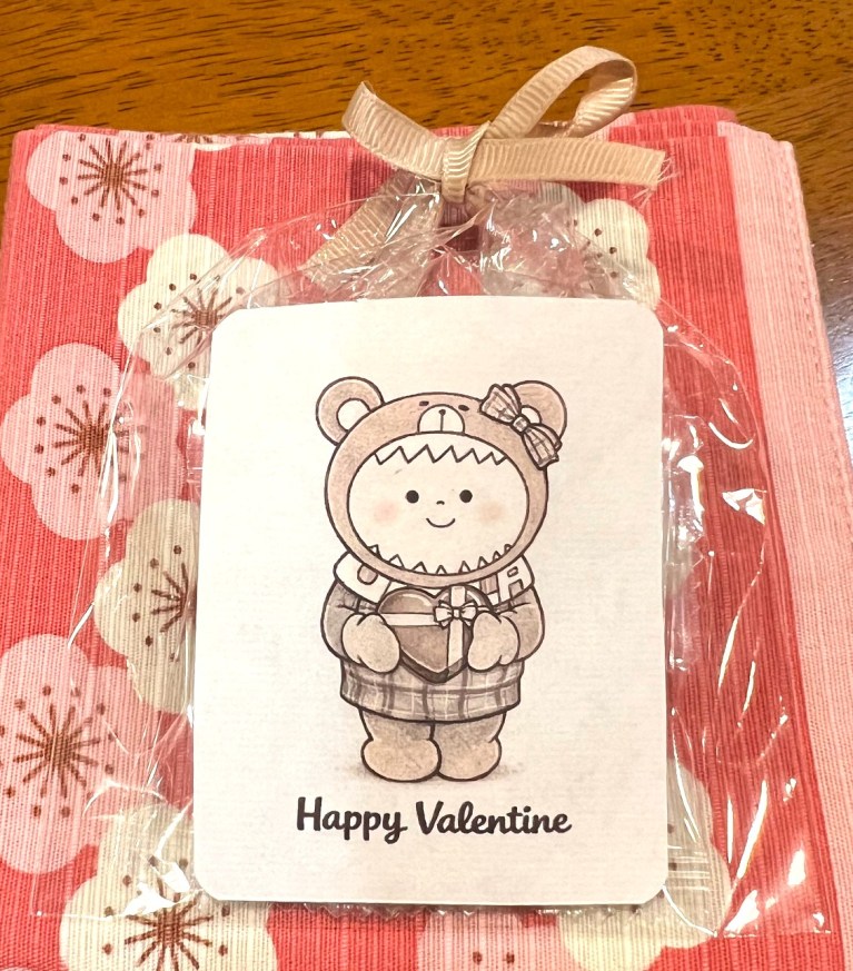 Here Pilina-chan comes. She is a character representing a dental clinic, where Mei-Shun’s home dentist Dr. M works for. The former patient visited them today with 2 purposes; one to take saliva test, the other regular checkup. Results were quite fine – that is why she picked up such lovely bags of no-cavity chocolates, handed toward the latter lady and Ms. F, her hygienist.