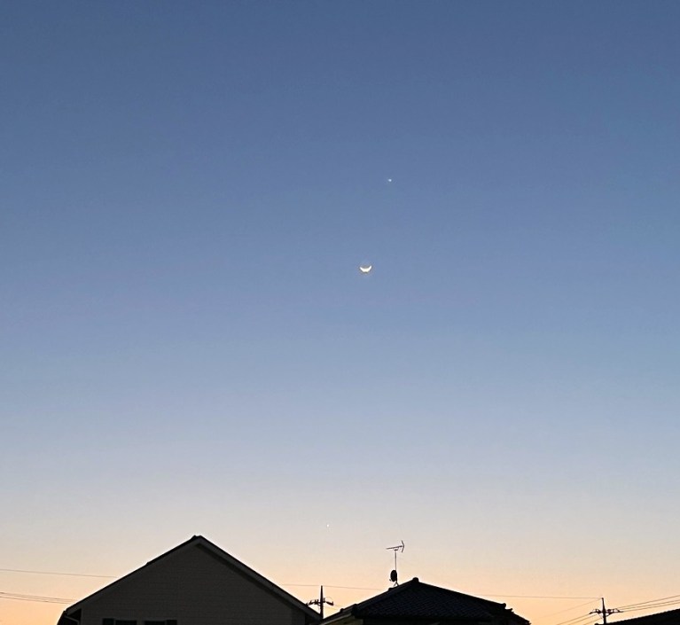 Shin and Mei-Shun got on Ms. Scarlet in early morning rain. The husband heads the U.S.A., yet Ms. Moon, his usual partner toward airports is hurt a little. The wife therefore said good day to him at the nearest station. When she returned home, almost no drop fell from gray sky – we could expect a beautiful 上弦 half moon tonight. Now is her time of high heels and walking 5 minutes.