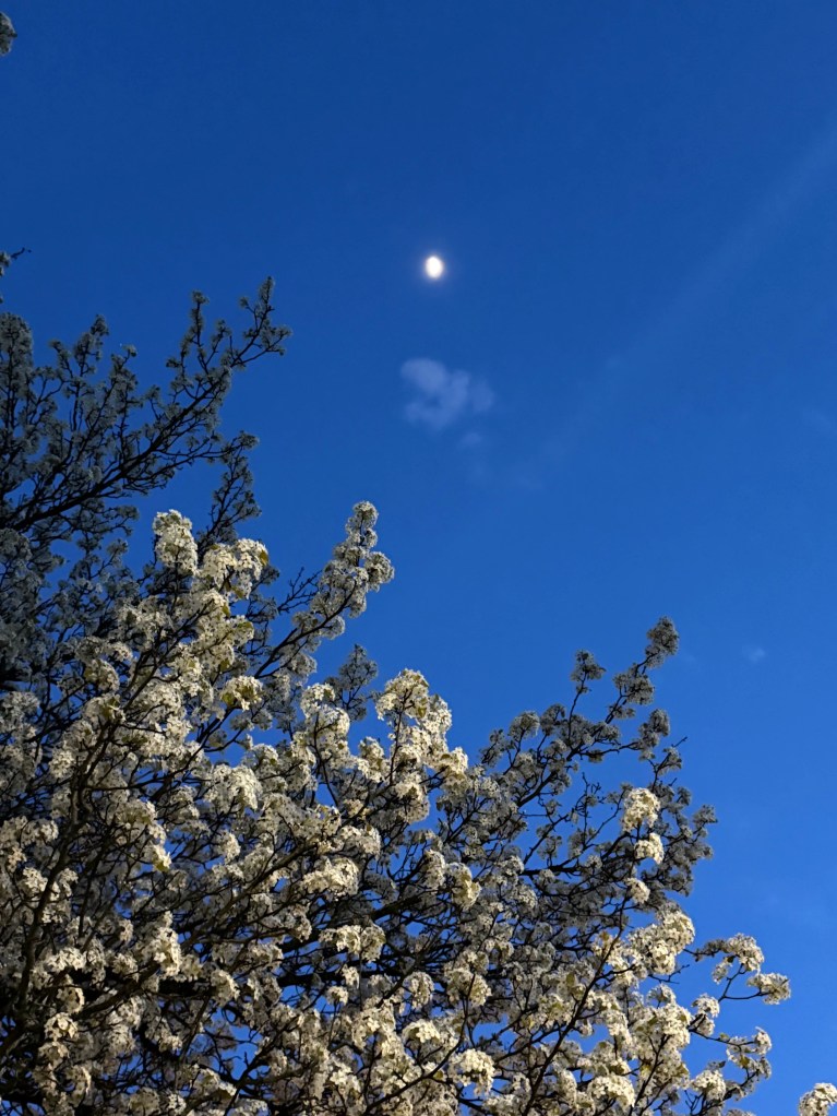 Shin kindly sent Mei-Shun above photo of 9th moon from Boston, U.S.A. yesterday. The wife received it before noon, meaning at night in an American city. She therefore saw that celestial beauty twice, while wondered why her husband was outdoors. “A fire alarm sounded, yet it was false one”, he replied. She was relieved enough to find pretty white flowers below.