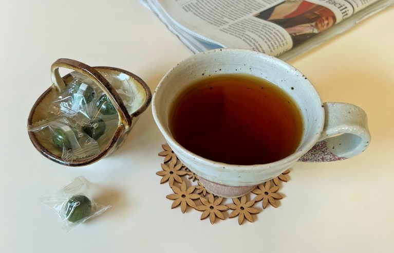 StandardMikan-chan and Mei-Shun danced with Mademoiselle Angel yesterday. It seemed cloudy, easy to do it yet a bit too humid. The latter therefore purchased a box of slim pads to paste onto inner forehead of helmet — a kimono lady teaches how to use them. Now, what numbers would Ms. Scale show after such perspiration? They were quite well, let her enjoy お月見 sweets from Nagoya.