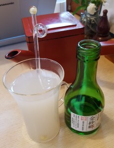StandardShin and Mei-Shun ate out for the first time in as long as 3 months on weekend. いしじま, their favorite peanut shop and soba restaurant located nearby, looked quite fine even in such a rainy day. The wife found a soba shochu, distilled spirit on a menu, ordered a small bottle to be diluted by 蕎麦湯=soba-yu, hot water used to boil the noodle. Hmm, it is not bad.