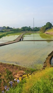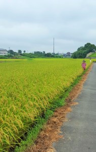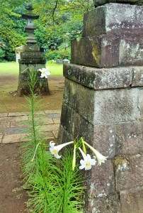 StandardWe have 処暑=shosho, the 2nd of autumnal 二十四節気 today. Well, partly thanks to successive rainfall from Tuesday, heat wave over 35 degrees Celsius seems to have gone. It serves Mei-Shun who feels something sacred to see rice paddy full of ears along the lane leading to the Gods’ place. And oh, beautiful white lily, you have a brave heart to stand against gale by the typhoon.